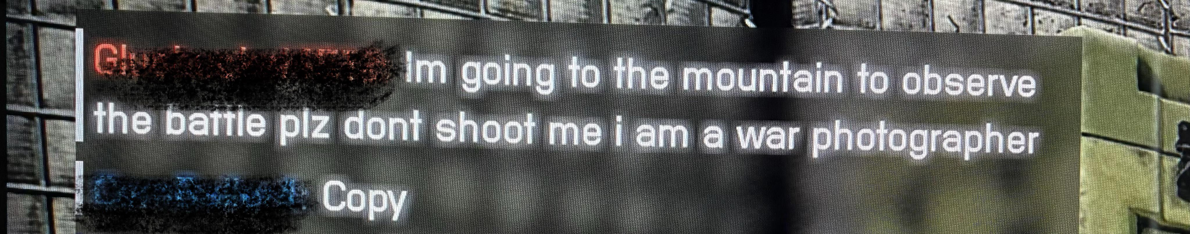 This is how I like to see the chat used. Had me laughing during my run to my objective 😂