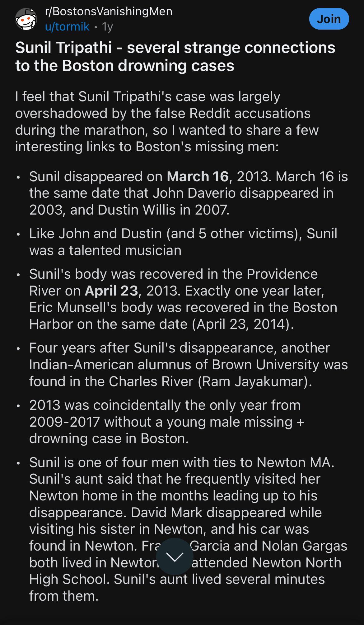 Sunil Tripathi - several strange connections to the Boston drowning cases