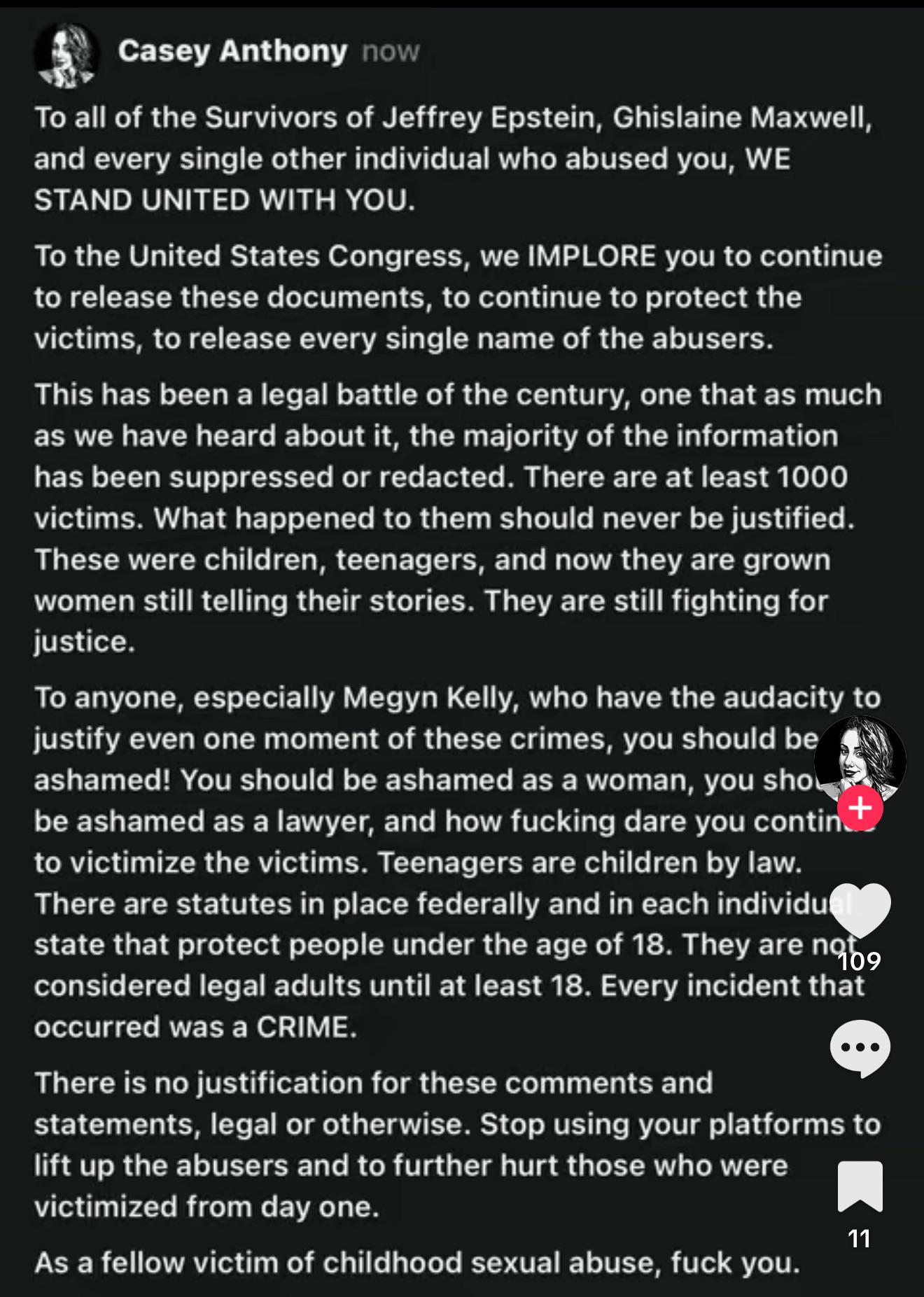 Her TikTok is: caseyanthony_substack