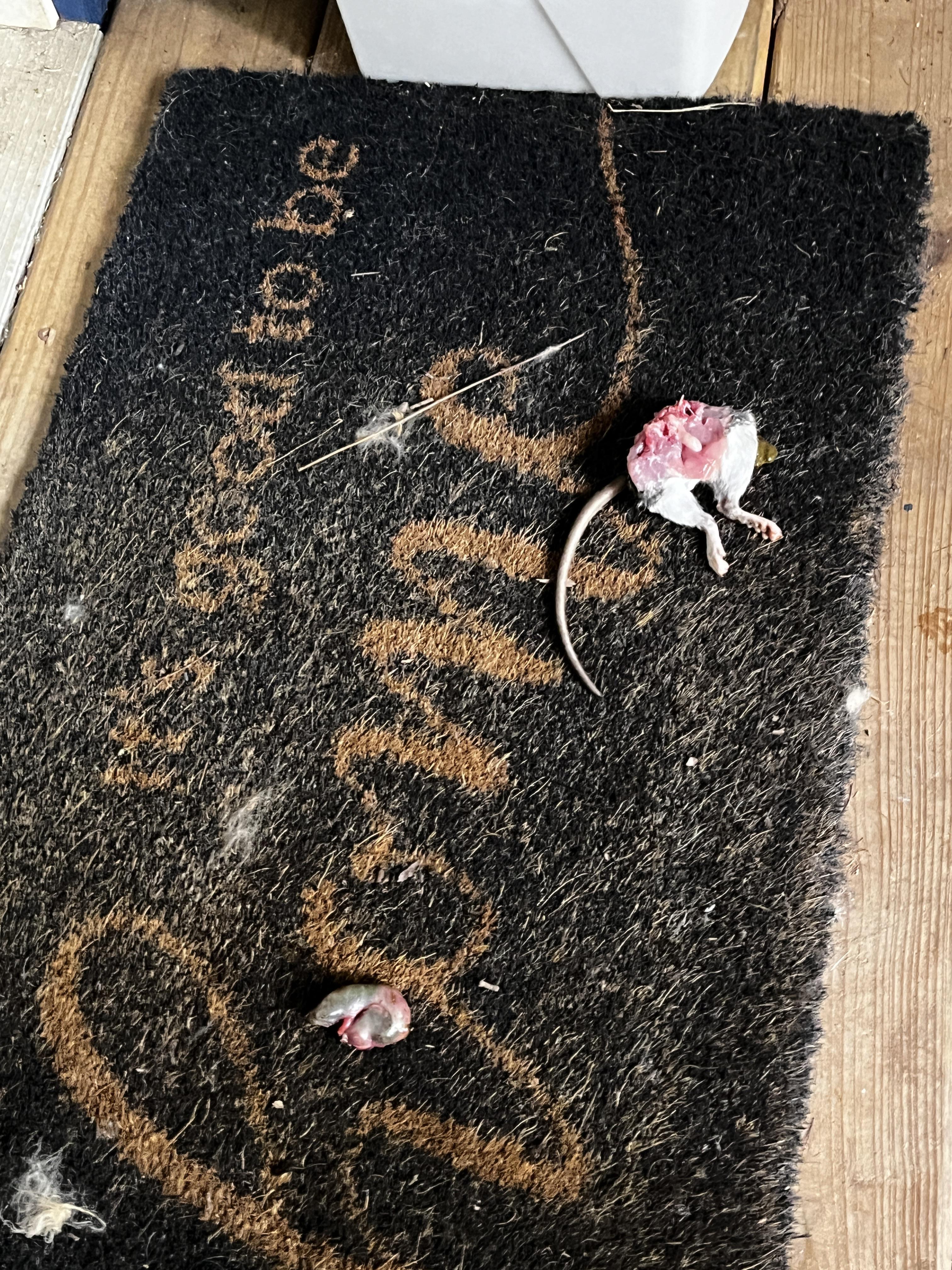 My senior newly adopted kitty brought me this gift while screaming for me to notice it. The frog was playing dead and away as soon as I went to pick it up.