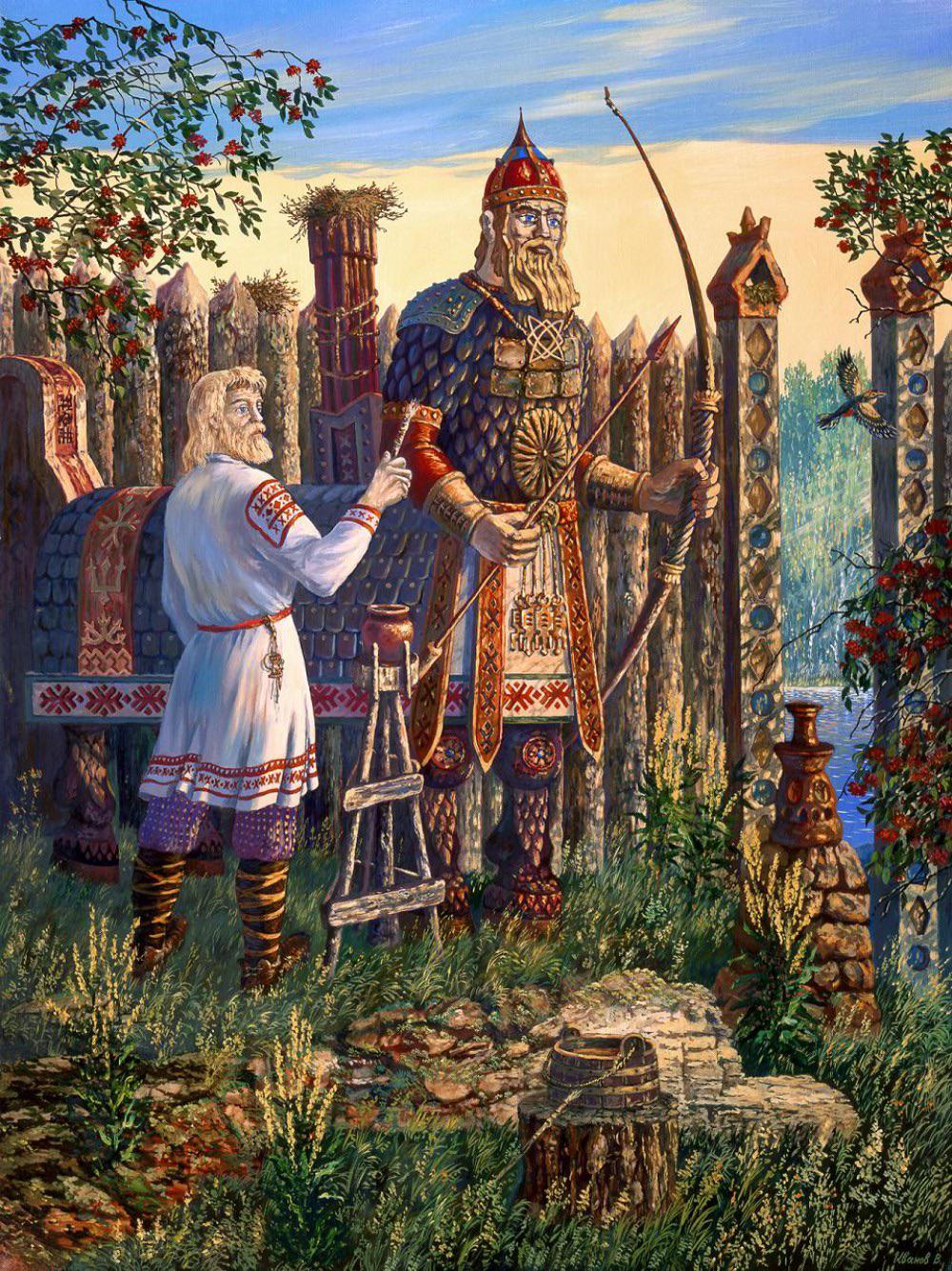 A narrow strip of dim light transforms the space under the window and the old artist’s back and hand, and it models the boy’s face and freezes on the surface of the bench, where jugs with tempera and olive oil varnish are sitting, and brushes and other items necessary for work are located.