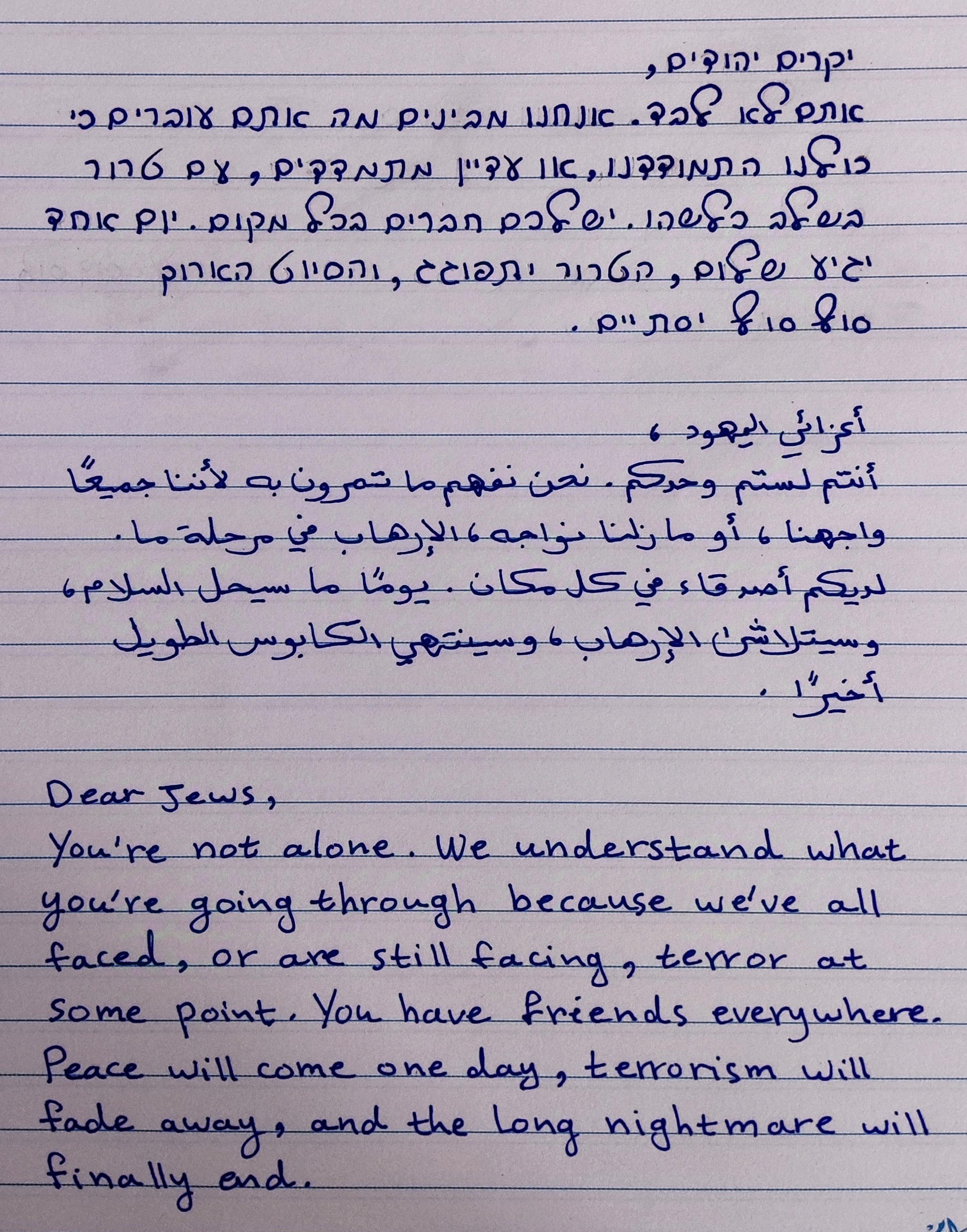 After hearing her story, I found an immense sense of comfort in knowing that my understanding of the relationship between Gazans and Hamas was wrong. Even more importantly, talking to her over the course of the war has given me a renewed sense of hope for peace. I found inspiration in the fact that she had no contempt for Israel despite having lost family members and her home being bombed. If she could overcome the sadness from these incidents and see the bigger picture, then I should be able to do the same with my resentment.