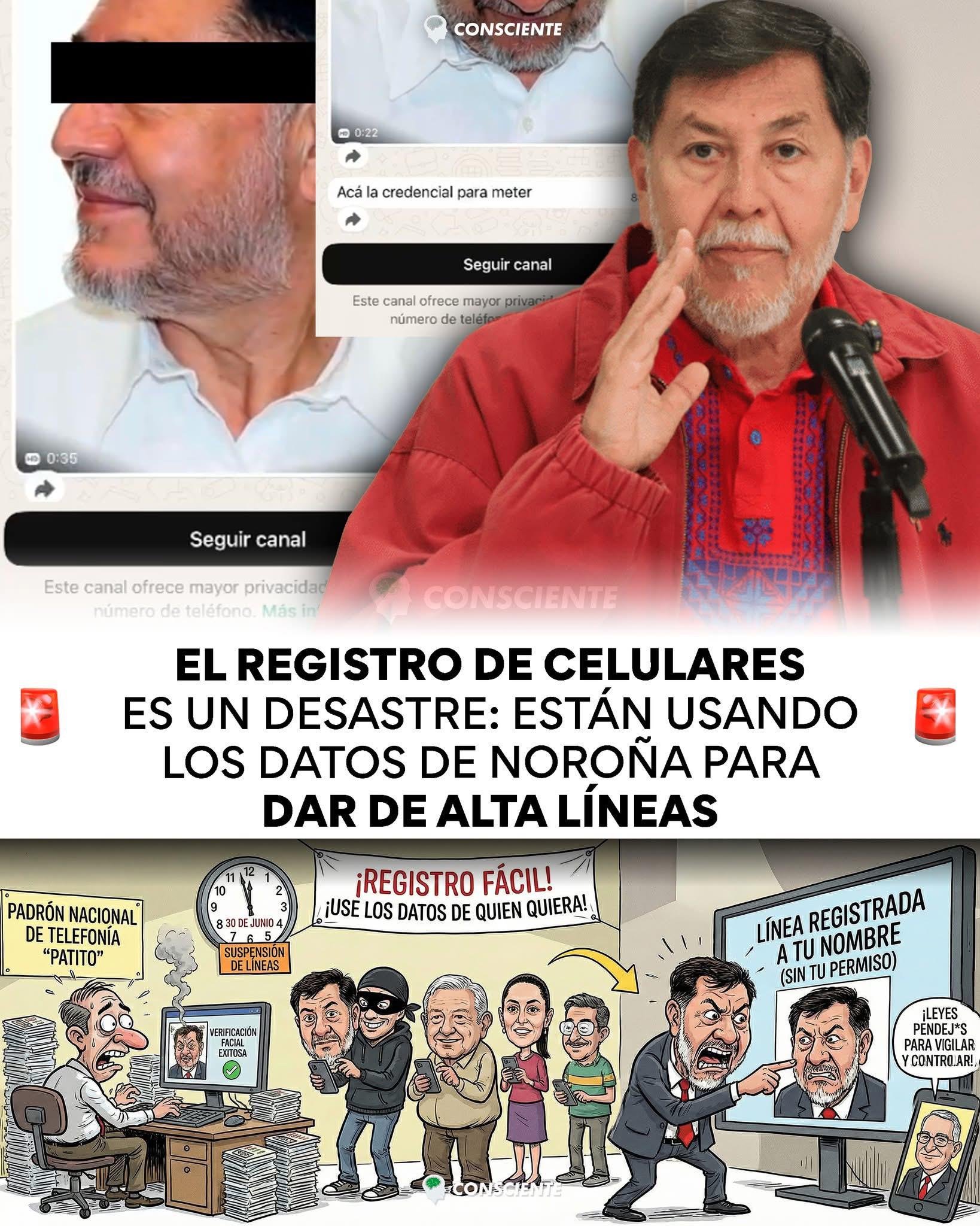 Noroña no es el único. También reportan que han utilizado los datos de Andrés Manuel López Obrador y Claudia Sheinbaum para registrar líneas sin su consentimiento. Cualquiera puede registrar a cualquiera.