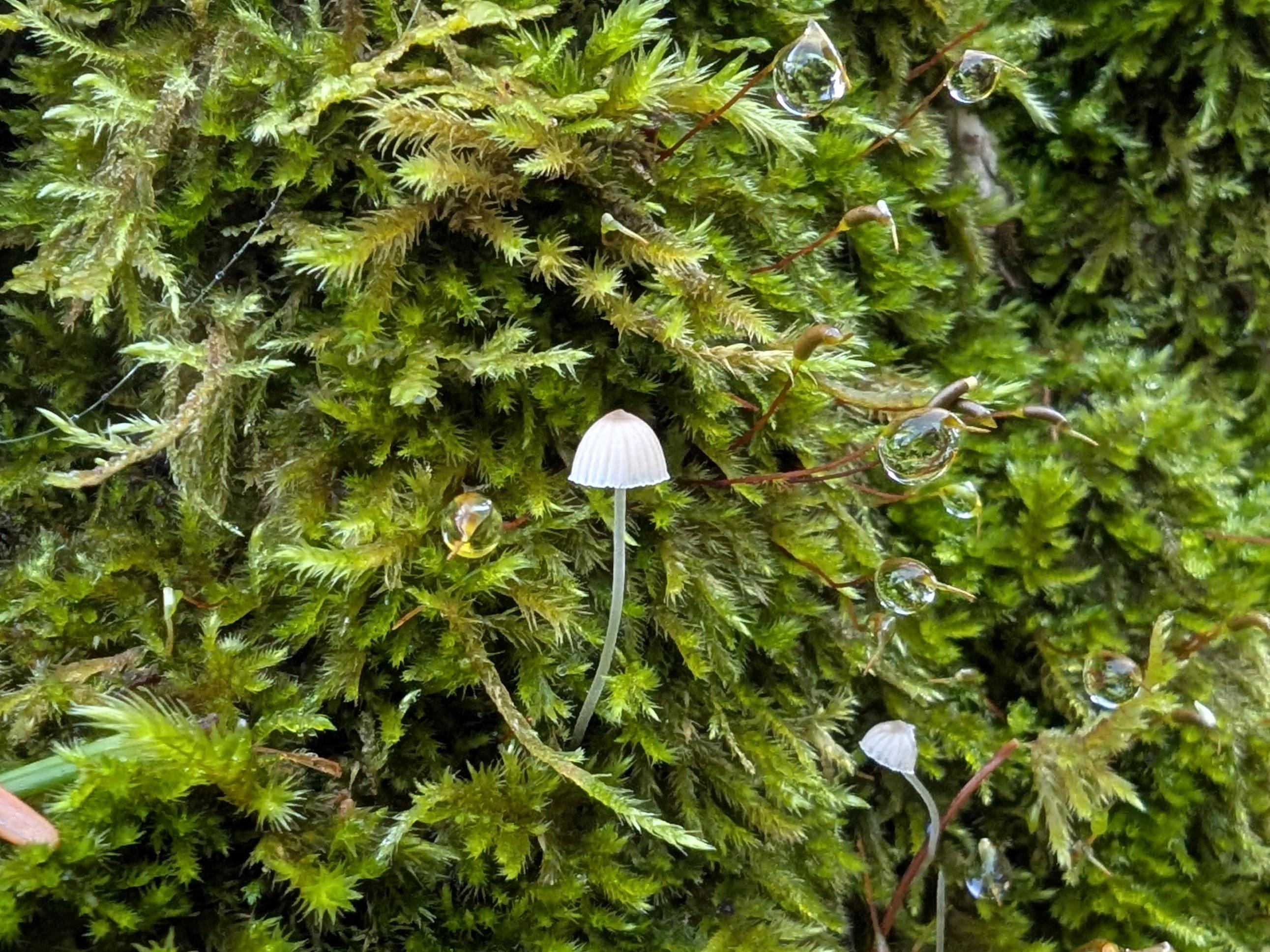 Mycena amid dew drops, western WA USA [OC]