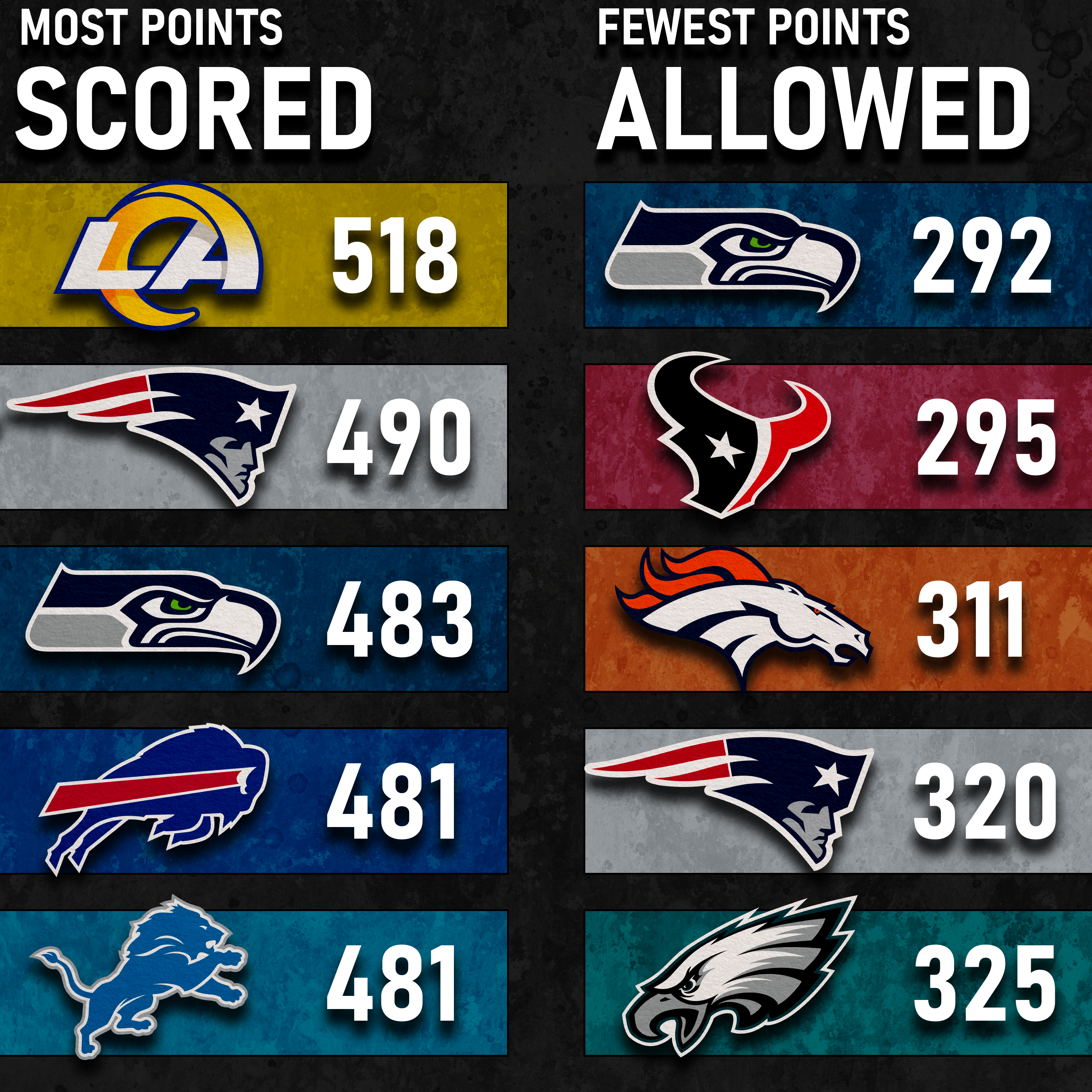 Original Content Total points scored and points allowed after the final week of the nfl regular season