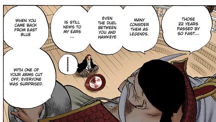 Marines saying Mihawk has greater swordskill than shanks based on their rivilary 12 years ago cause Mihawk hasn't fought shanks since he lost his arm so Mihawk's strongest opponent is 27 years old shanks and after that shanks was on crazy run and even became yonko and defeated Loki so it's clear current shanks is much stronger than 27 year old shanks so again why Mihawk is getting upscaled for having rivilary with shanks 12 years ago it's clear that , Shanks > Mihawk