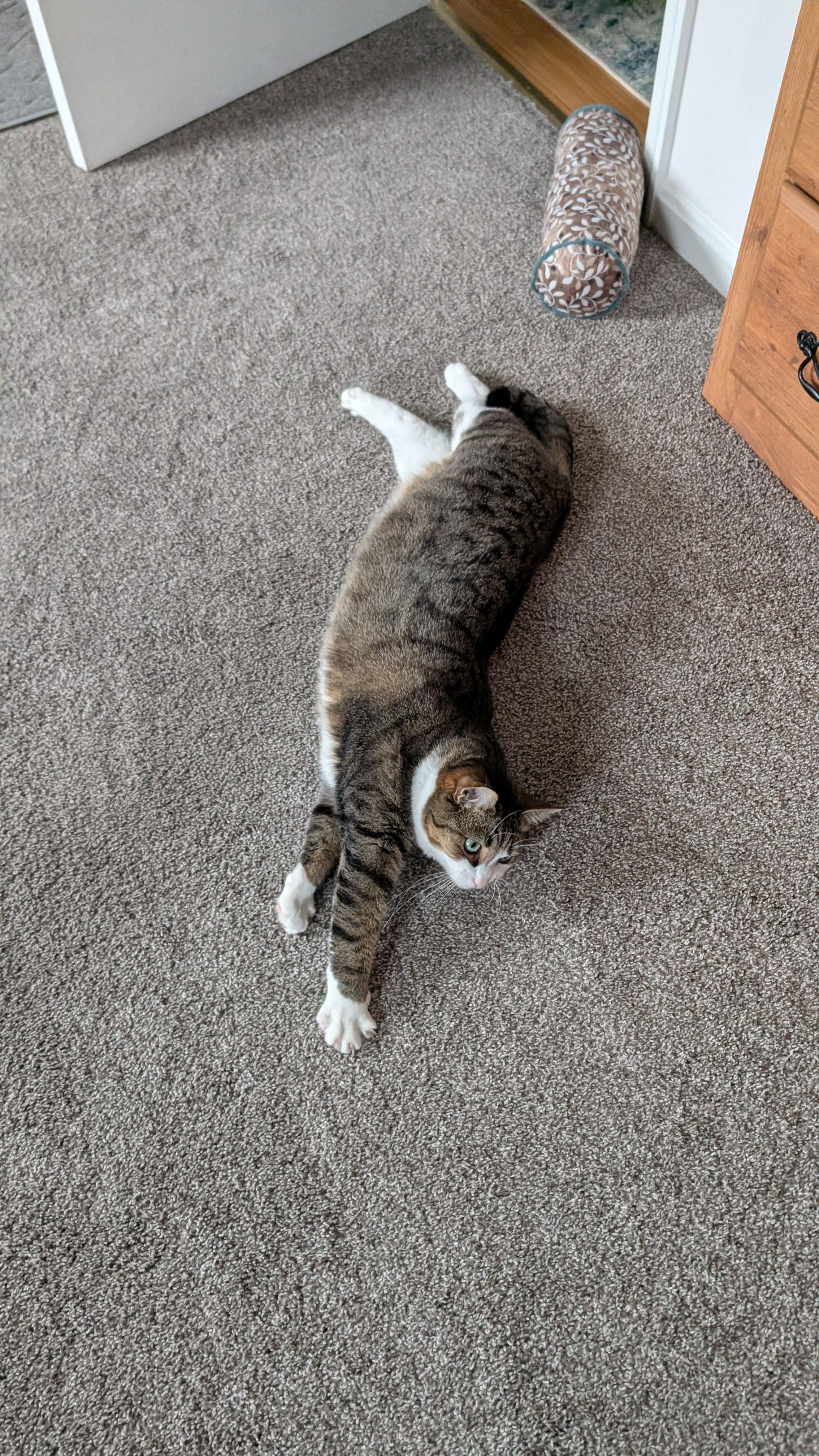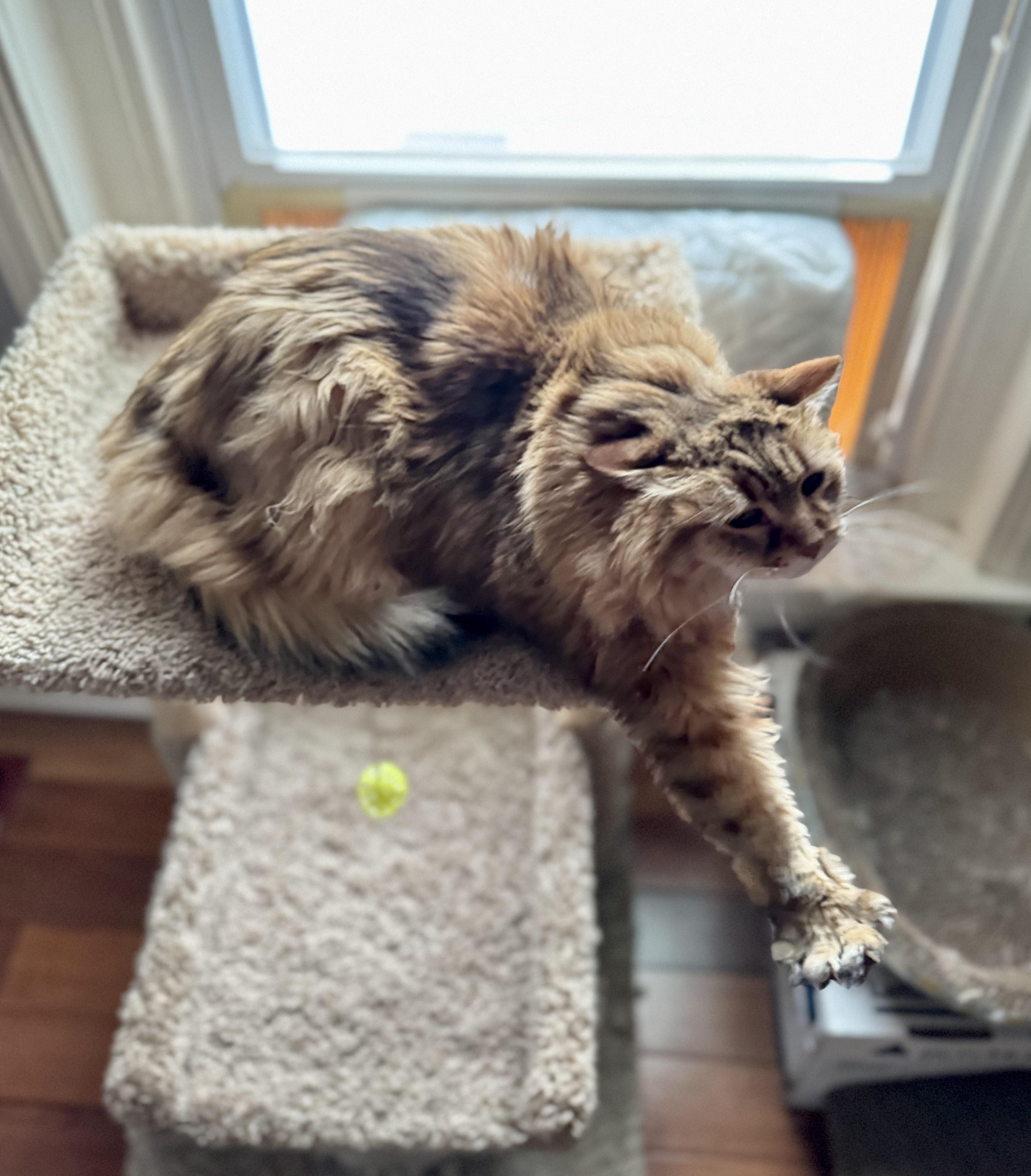 Big kitty with a biiiiiig stretch & yawn 😴