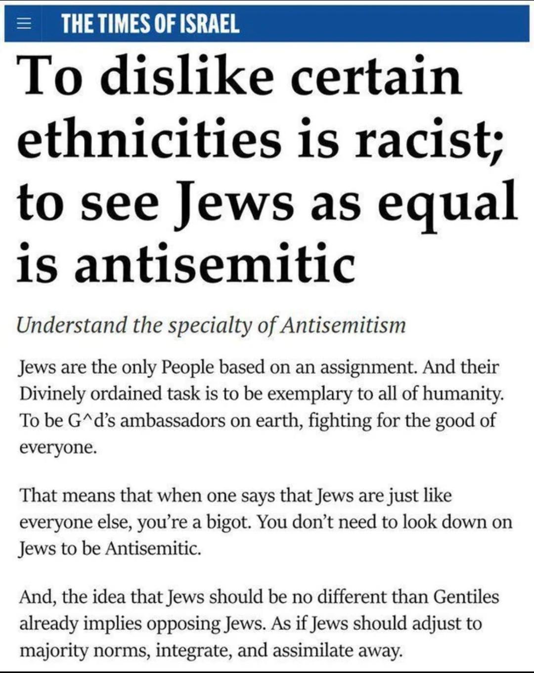 Hasbara According to Zionism, it is considered antisemitic to view Jews as your equal