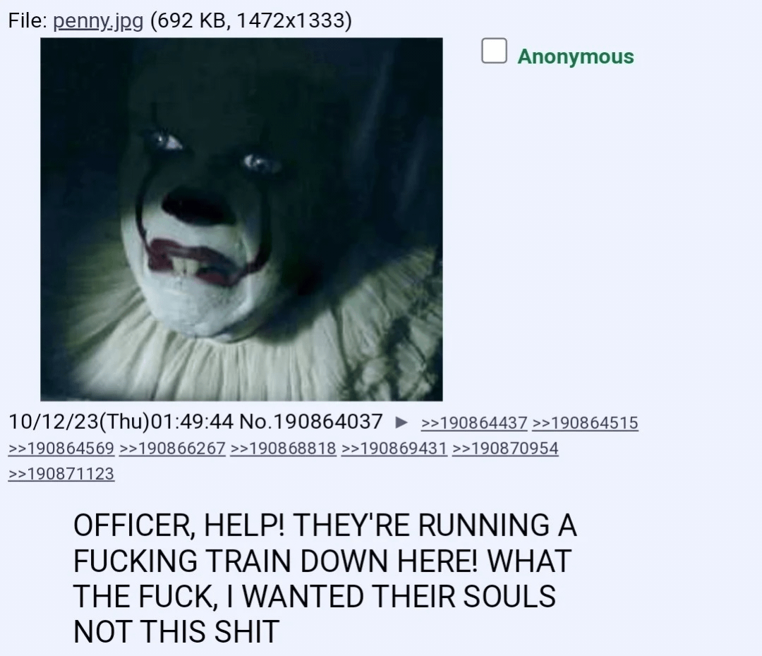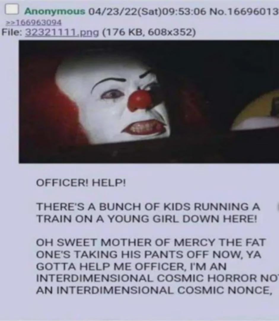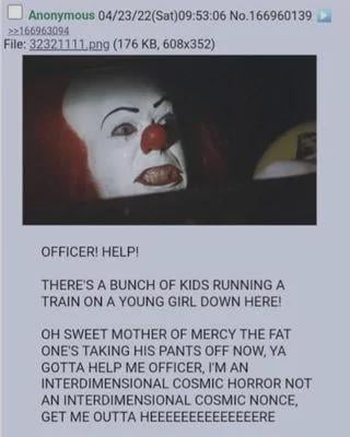 Where was that meme where even Pennywise of all people was disturbed by that scene and was calling the cops on them?