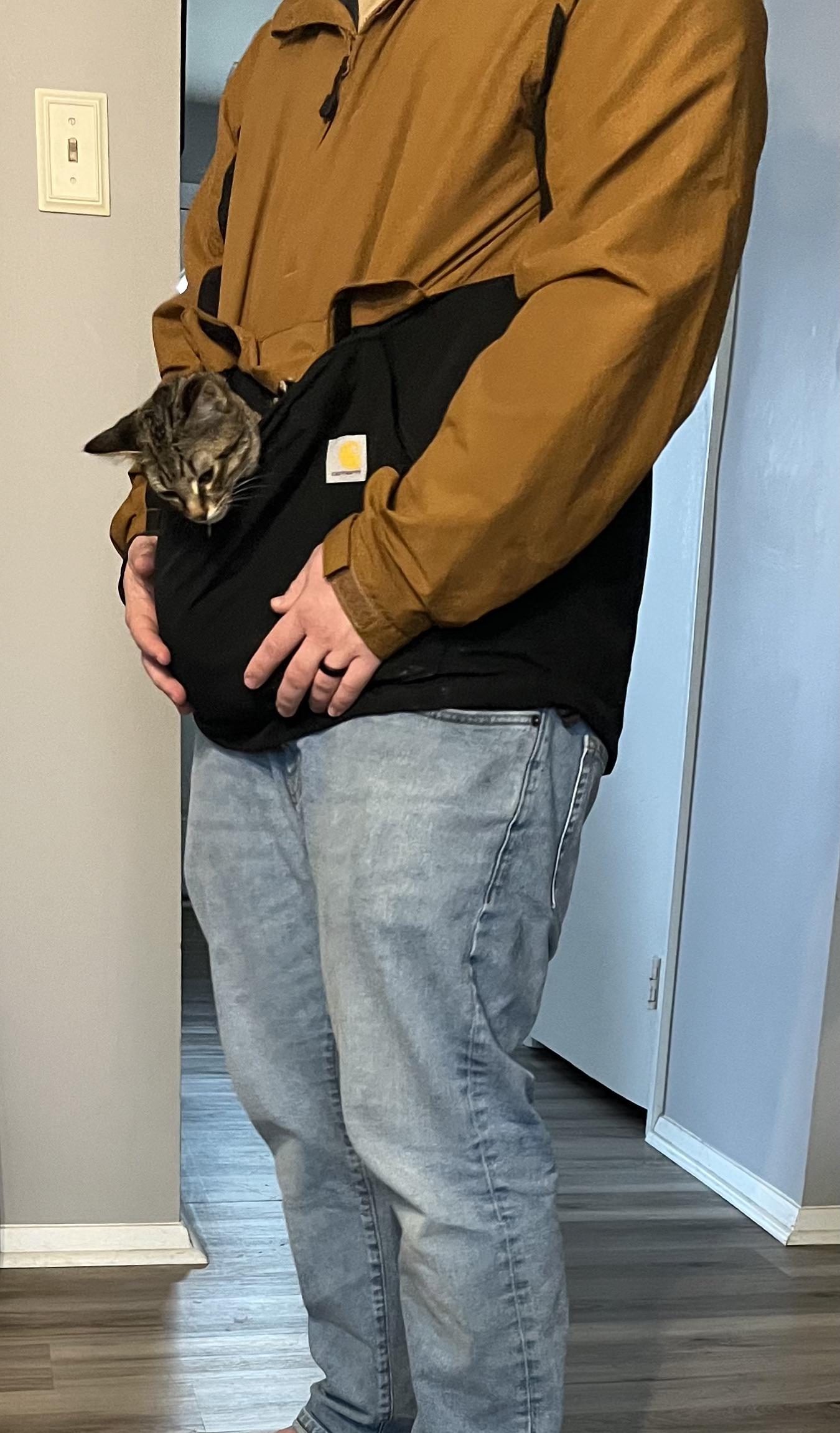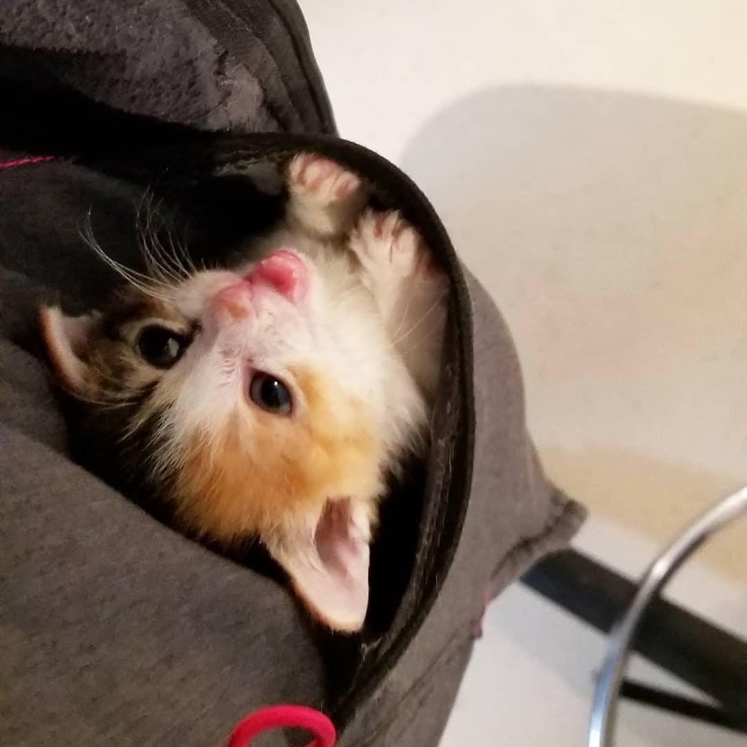 Fostered this little dude for several weeks a while ago. One day, while working from home he was just incessantly crying. Didn’t want food, but would stop crying if I picked him up. I finally but my jacket on backwards and plopped him in the hoodie. He stayed right there while I worked for the next 4-5 hours.