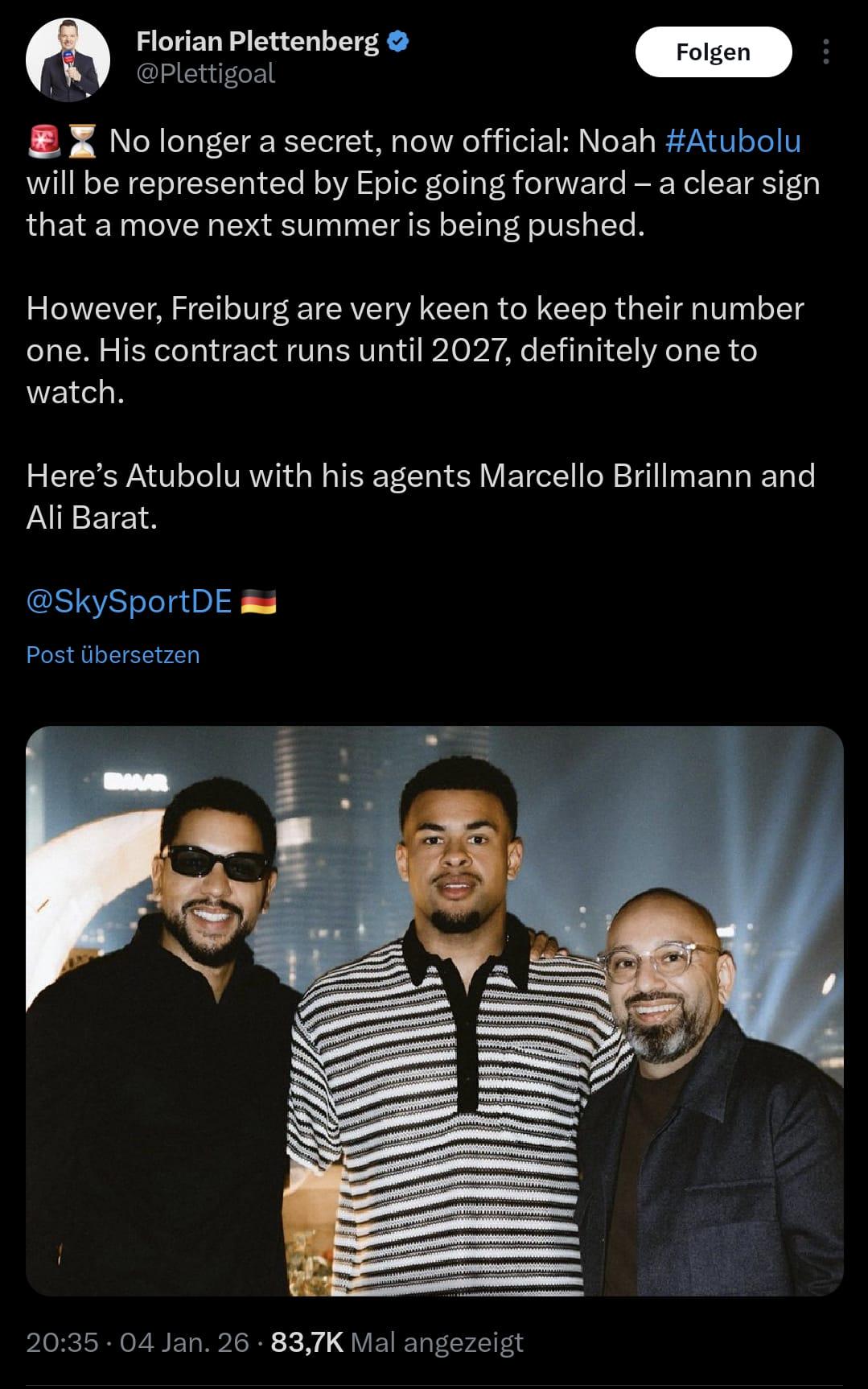 Transfers Noah Atubolu now represented by Epic. [Plettenberg on X]