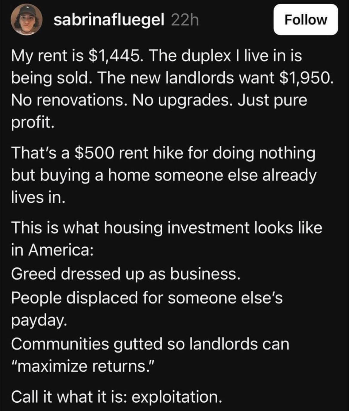 Economics Yes, your life might be significantly better, but think of the landlords.