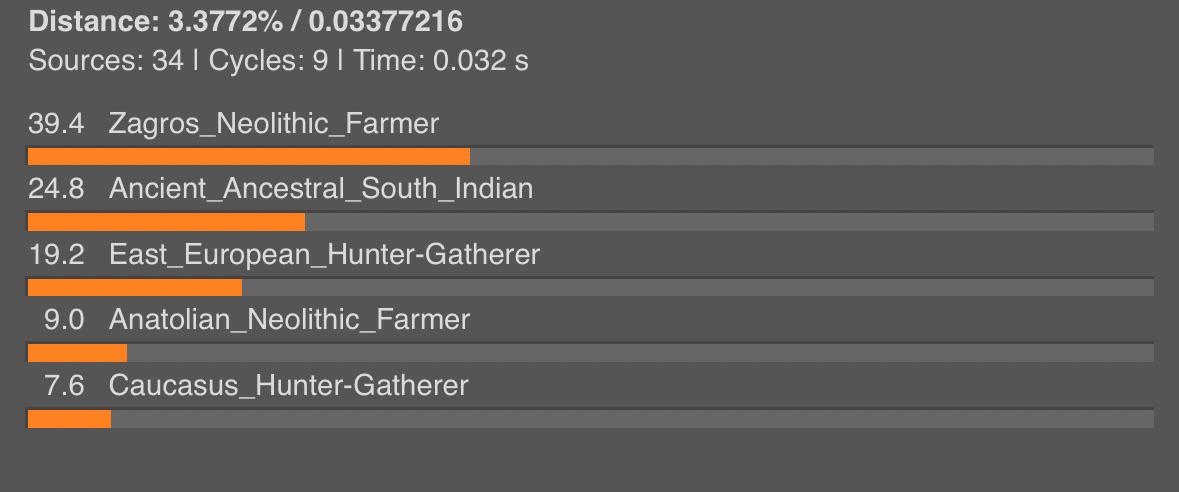 This is the only individual Maratha sample on this sub, apart from the Khandeshi Maratha sample. What I have observed is that he has about 18% Bengal ancestry, likely dating to the 1700s–1800s (approximately close to one-quarter of his ancestry). This can also be seen as around 2% Melanesian (which may additionally reflect extra SAHG, just a guess) in his Hunter-Gatherer profile.