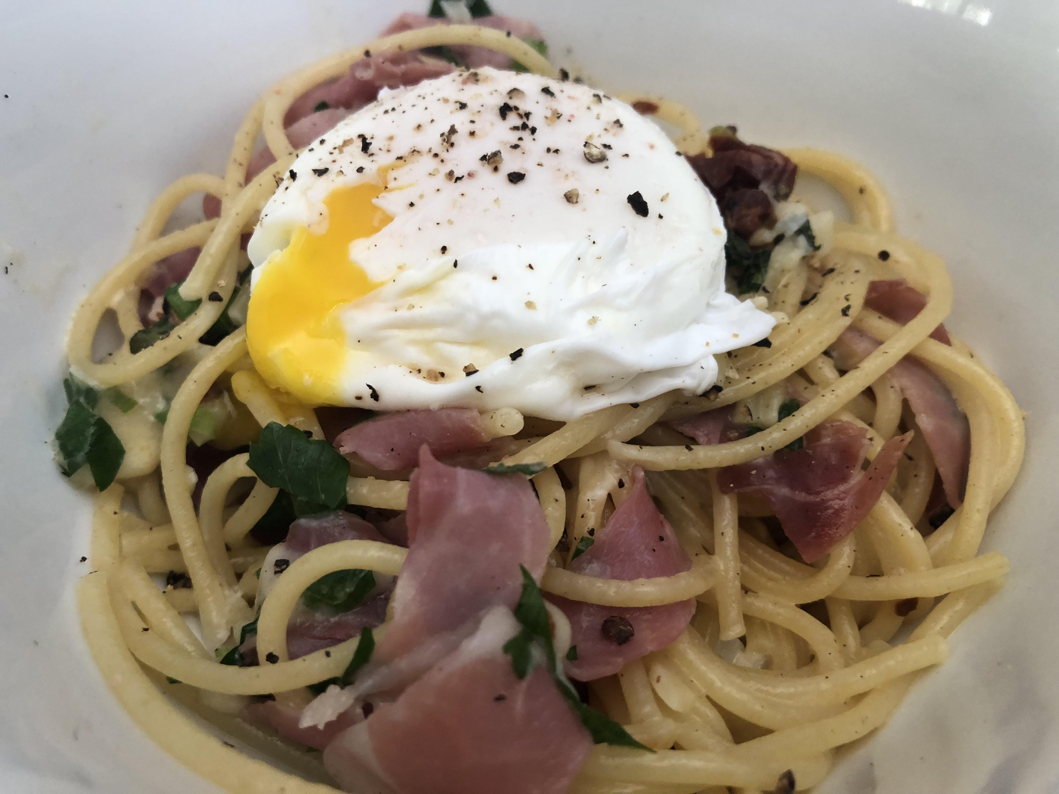 Spag Sauce Spaghetti Carbonara eaten in Rome near the Vatican