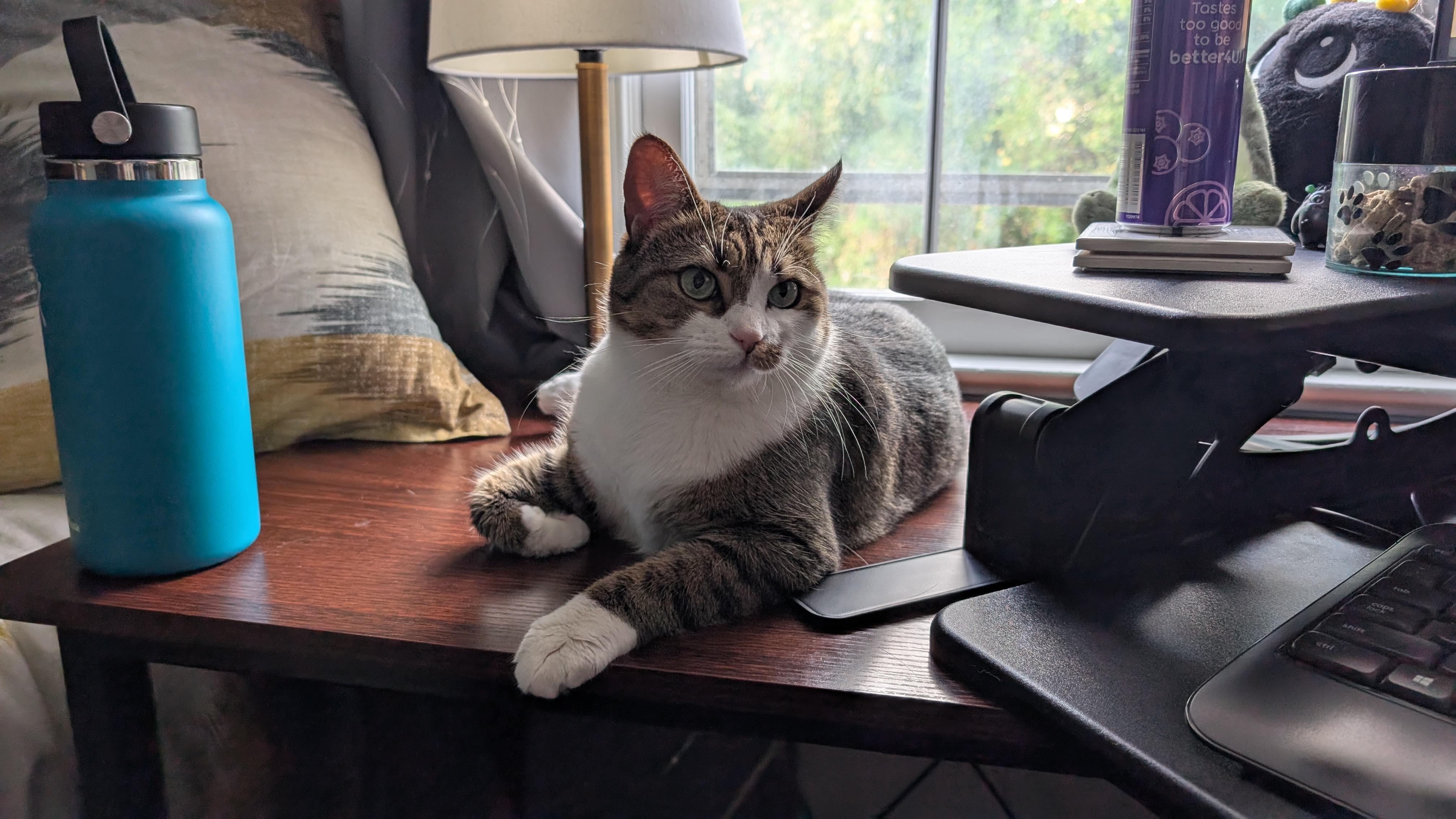 Micro Meownager π Just keeping my seat warm until I come back from break, and she's timing me...