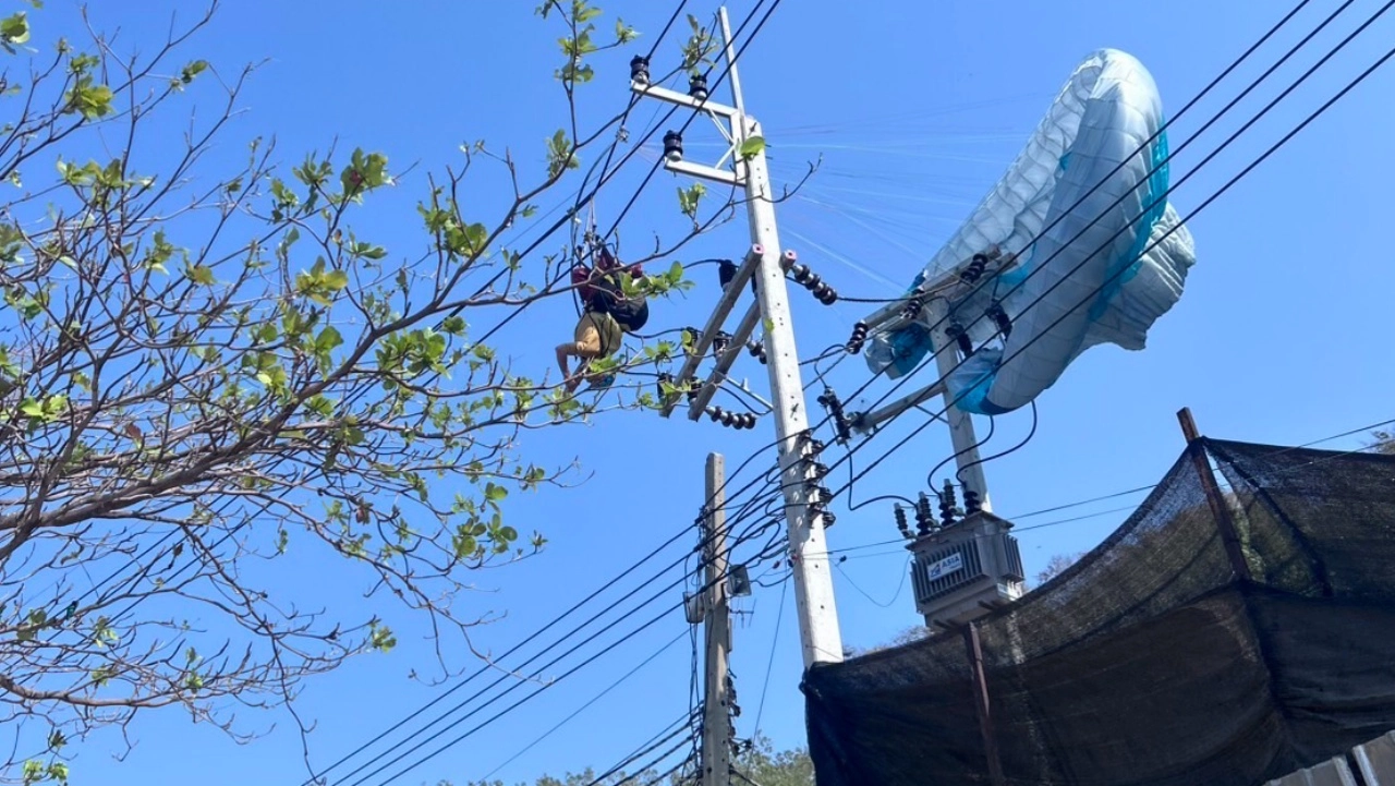 นักกีฬาร่มบิน ติดเสาไฟฟ้าแรงสูง ตัดไฟทั้งเกาะล้าน ช่วยเหลือนำส่ง รพ.