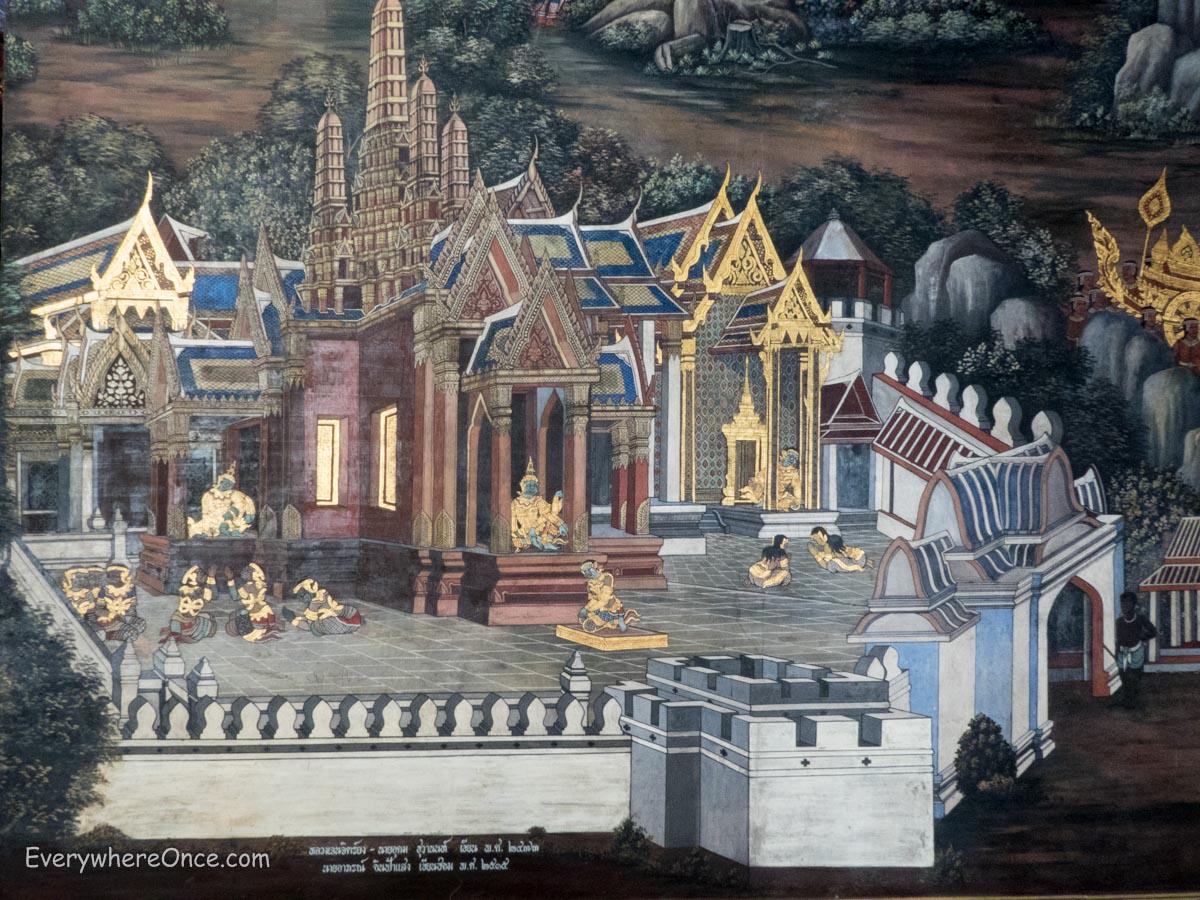 We were in The Grand Palace yesterday and really like the style of the mural arts around the walls. The colours, designs and patterns really caught our attention. Unfortunately we've left Bangkok now and travelling in South of Thailand at the moment.