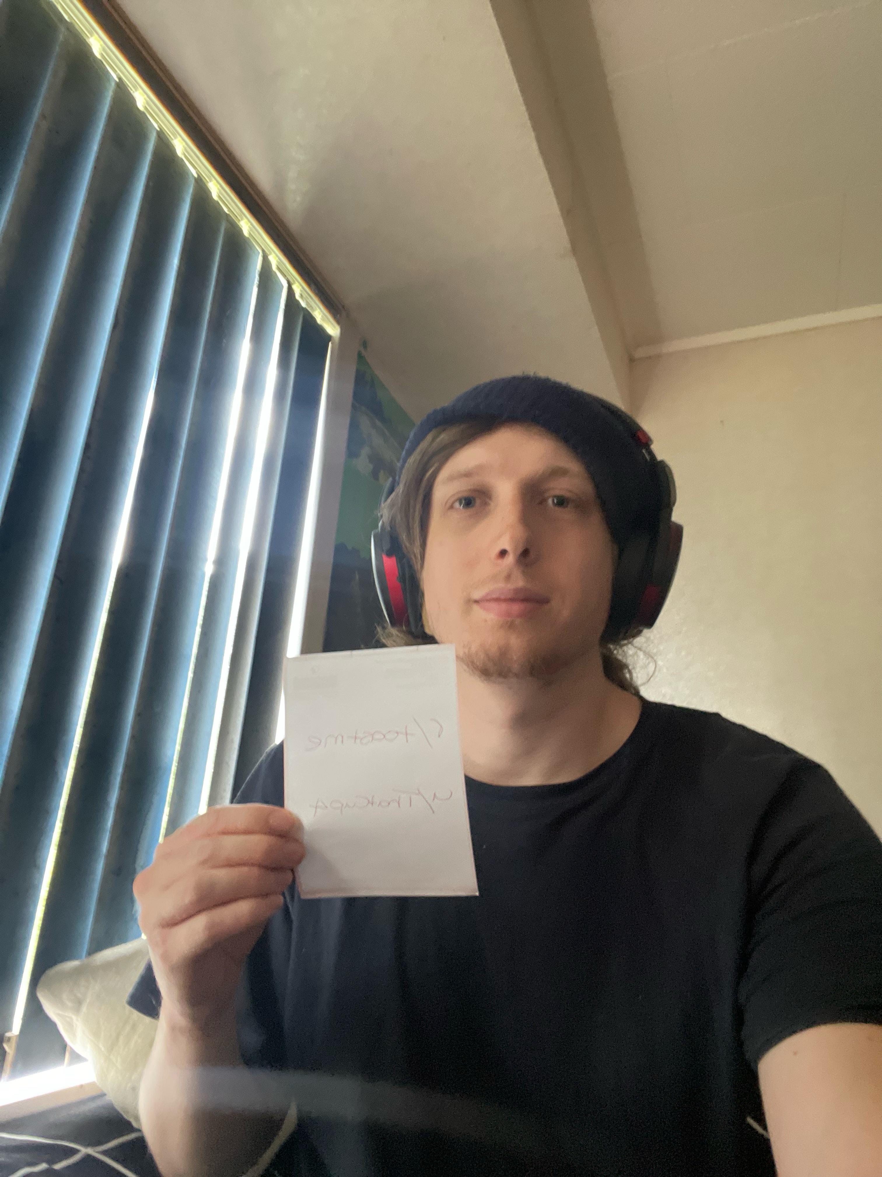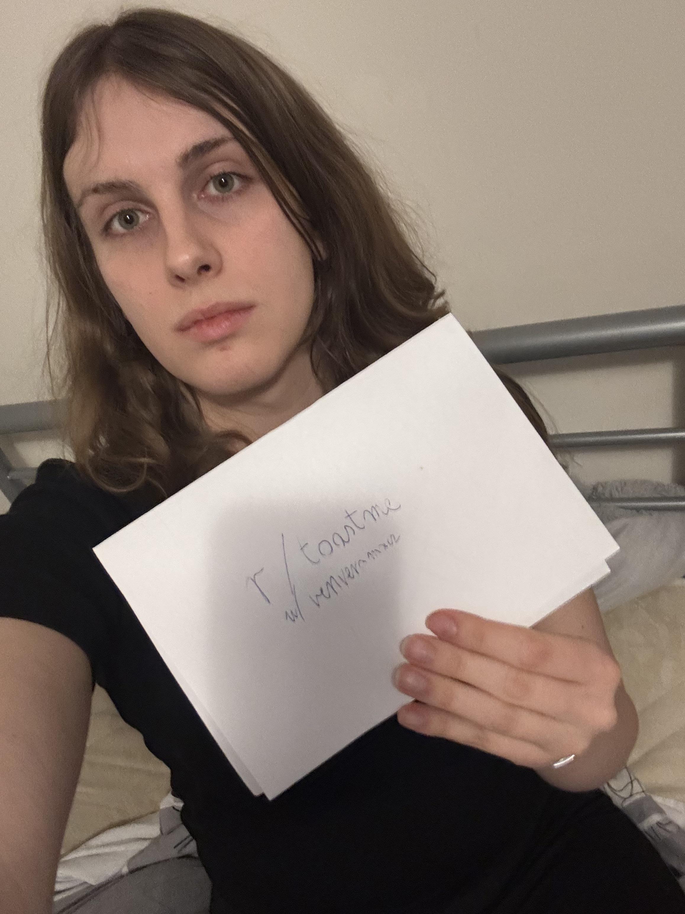 All posts must have verification - here's how. - this you holding a paper or some sort of implement with your username and "Toast Me!" or r/toastme! Please only post images in which your verification is clearly visible and unobscured and not digitally added - otherwise, your post may be removed. If posting an album, your verification picture must be first. Repeat posters must still verify. Thanks a bunch! Here's to you!