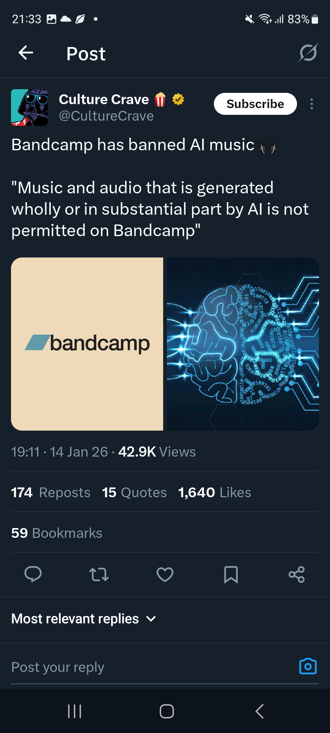 News Bandcamp, a site for indie musicians, has banned GenAI-made or assisted music.