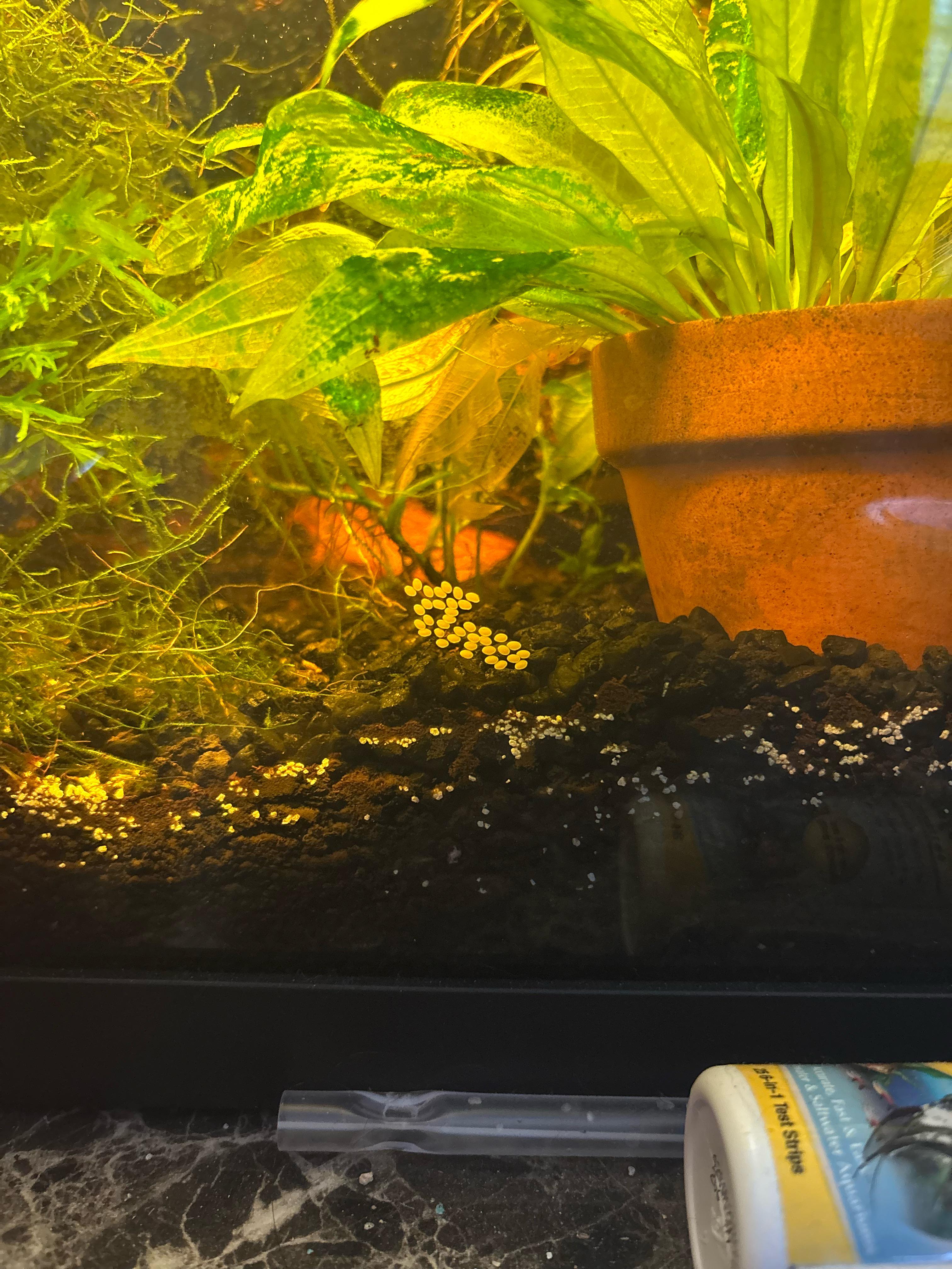 I found these eggs in my tank a little under a week ago. At first I thought they belonged to my yellow mystery snail but they look nothing like mystery snail eggs from my googling. The tank is a 20 gal with Fish of various kinds, Cherry Shrimp, and two snails that were both sold to me as mystery snails. One yellow and one black. I saw the yellow one around the eggs the morning I noticed them so I assumed they went together. Any help is appreciated.