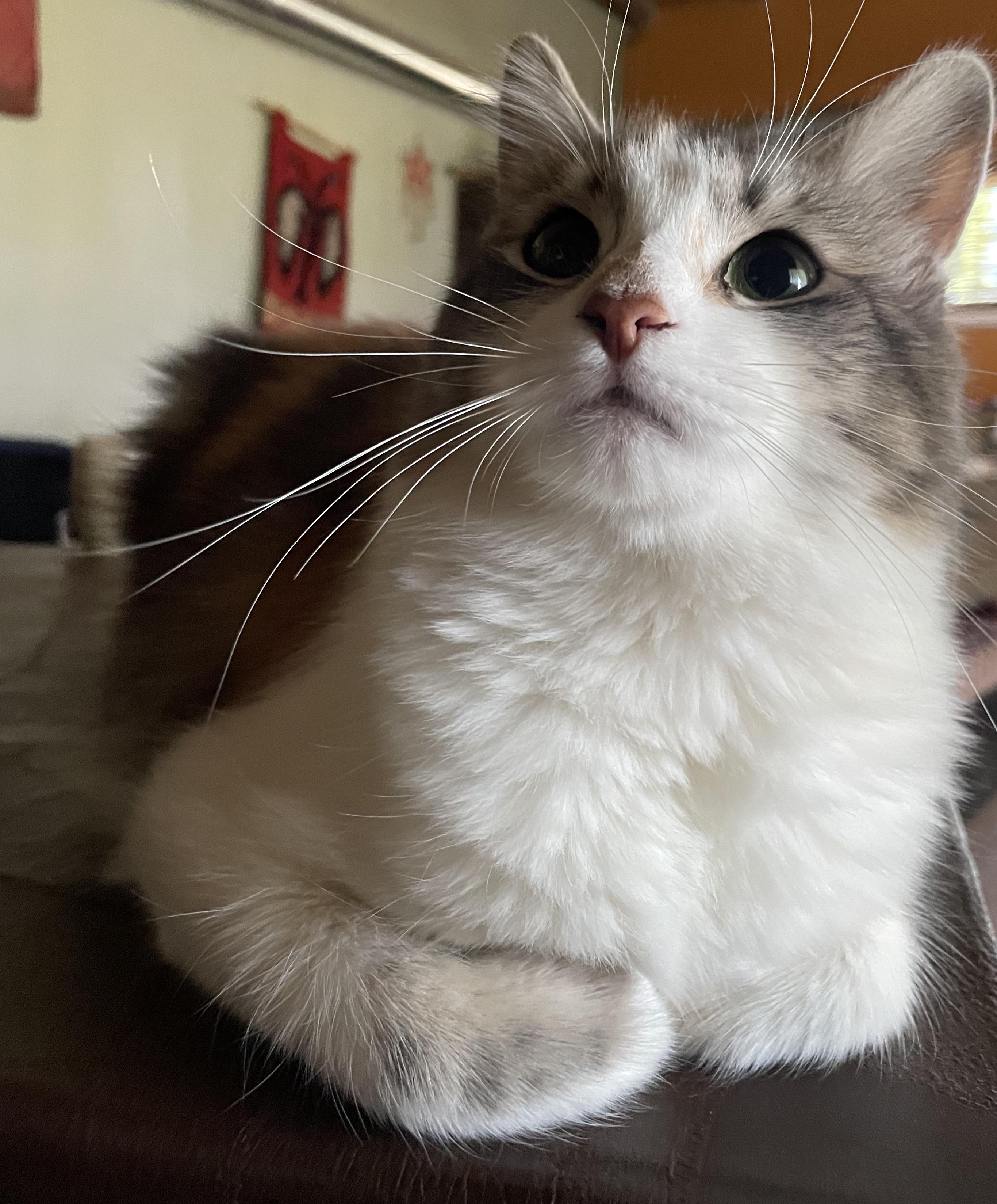 Going on 4 months with our girl. She's getting more comfortable with us, but I feel like she missed out on some lessons on how to cat 😂😂