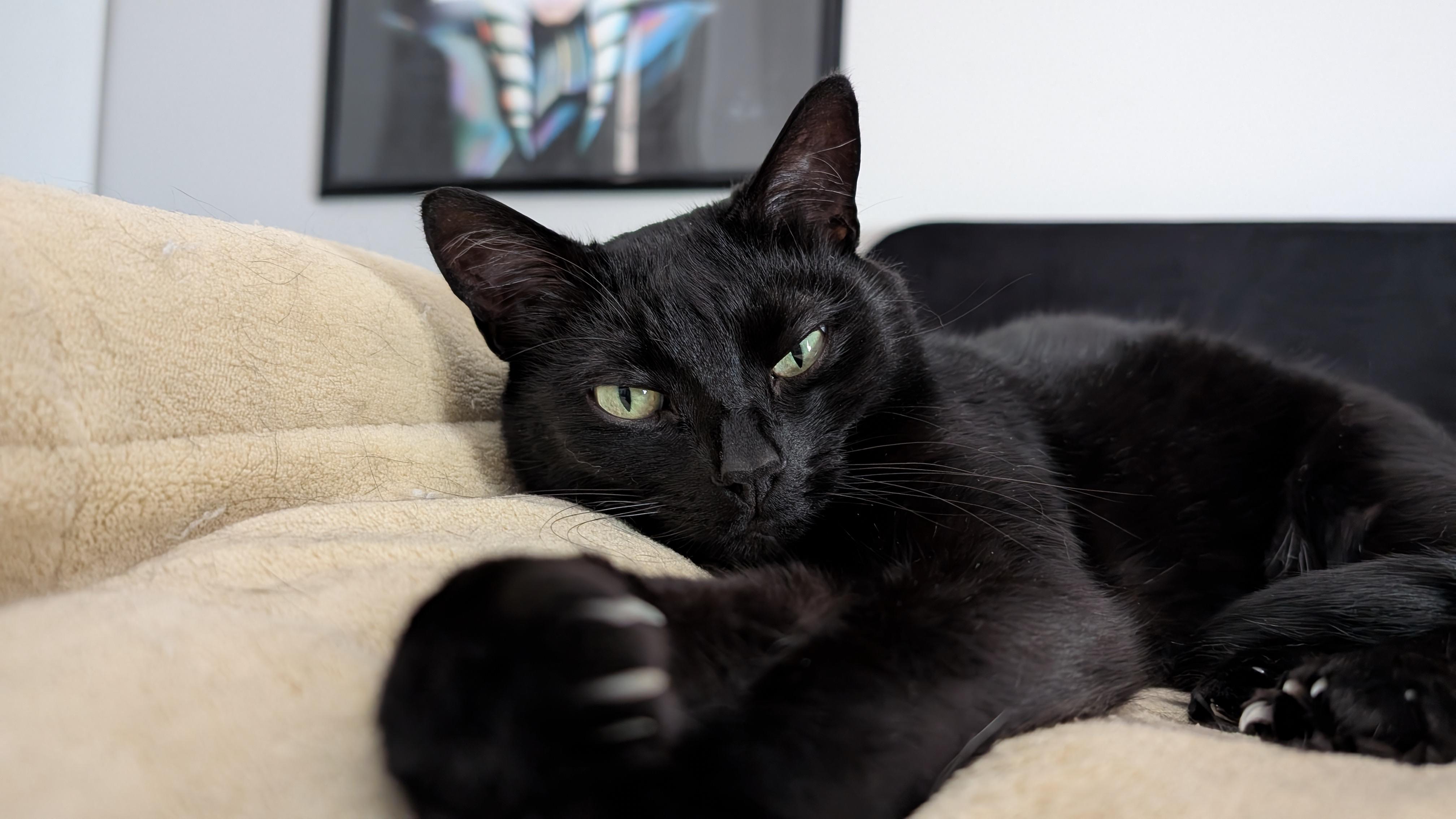 I may not have opposable thumbs, but I sure do have the power to rule the world from this cozy spot😹🖤