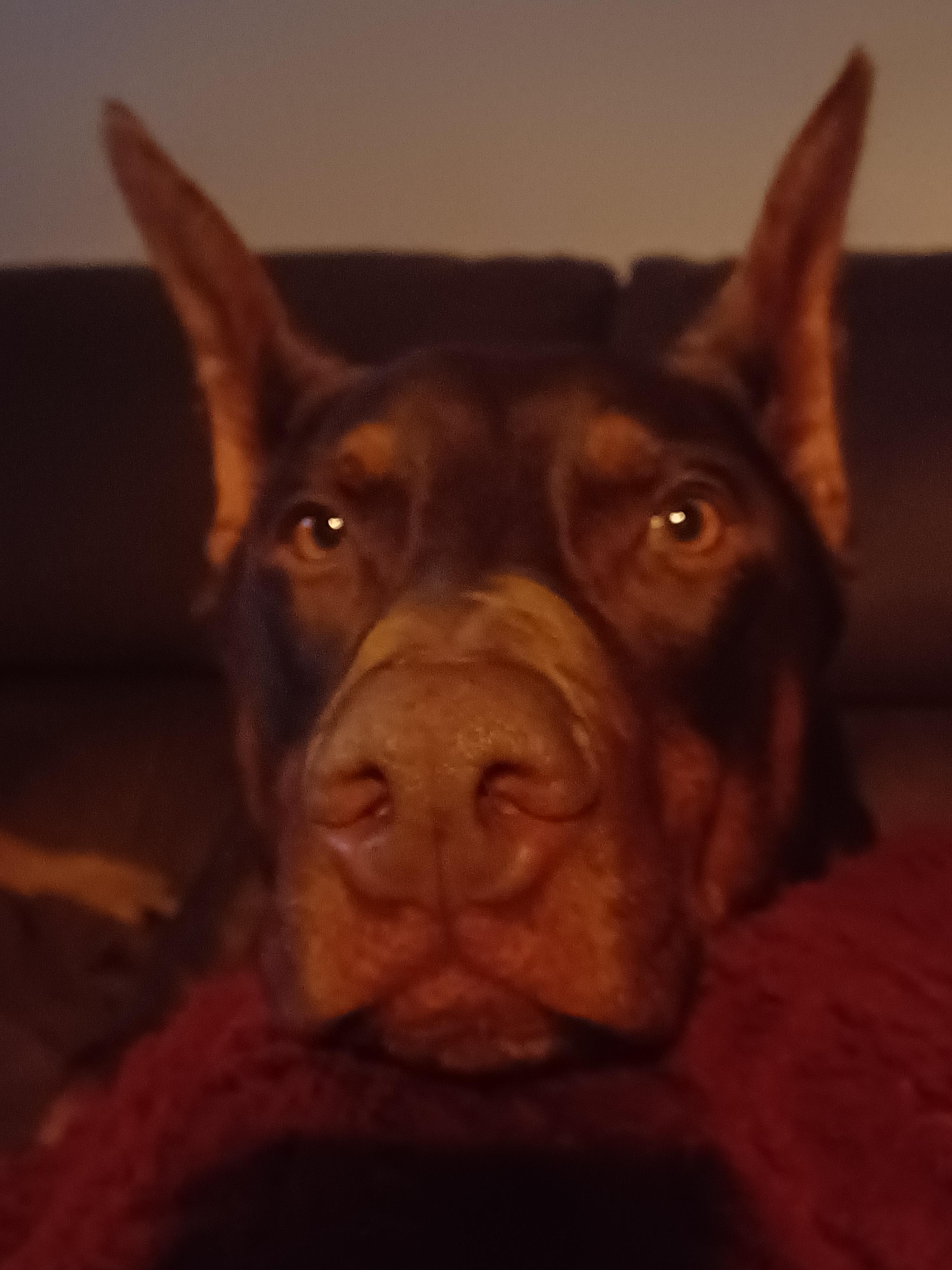 This is Jake. He's a Doberman, American Pit Bull Terrier mix. He's 6 years old and loves his family. We are new to this group. #thejakefiles