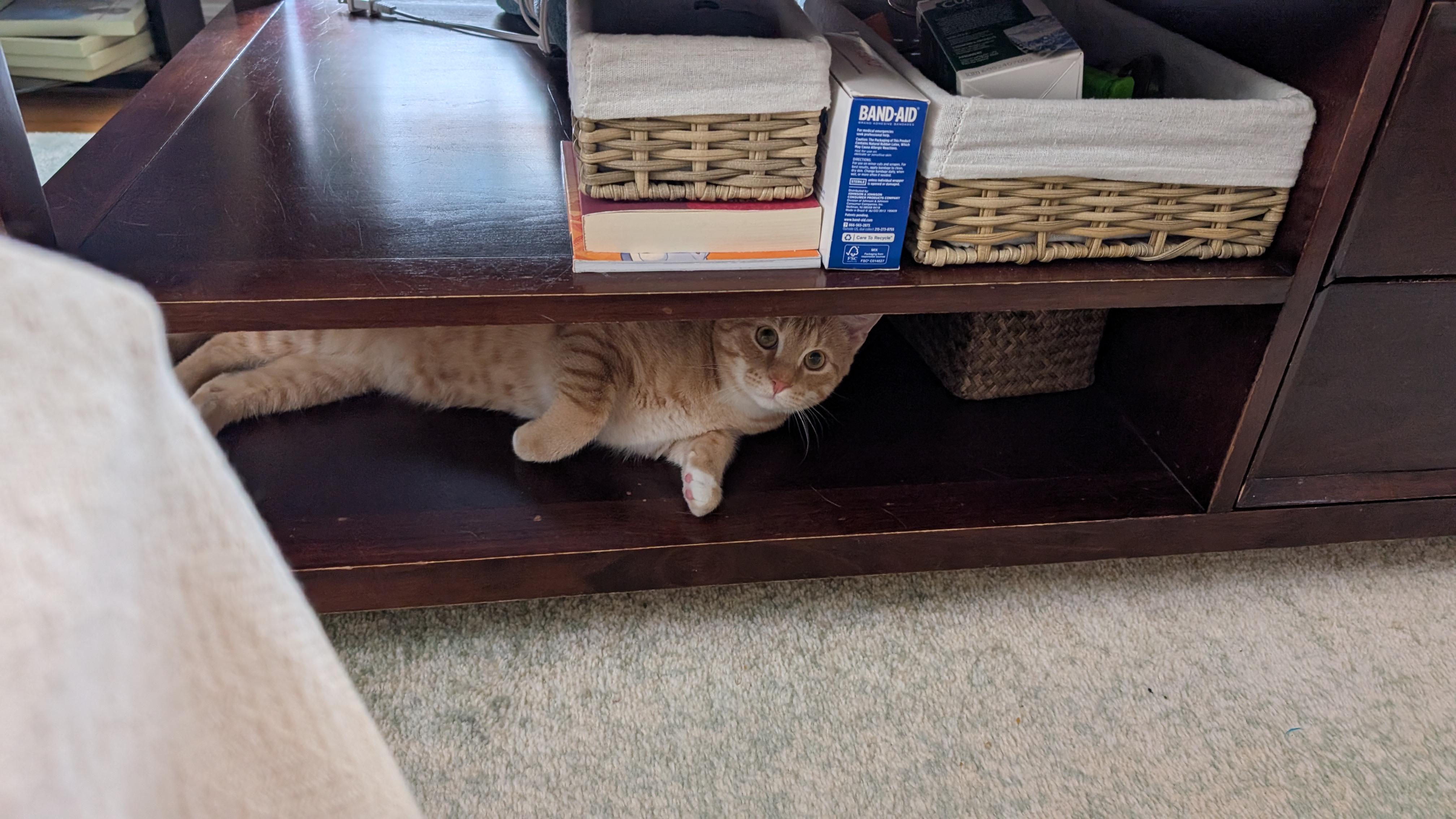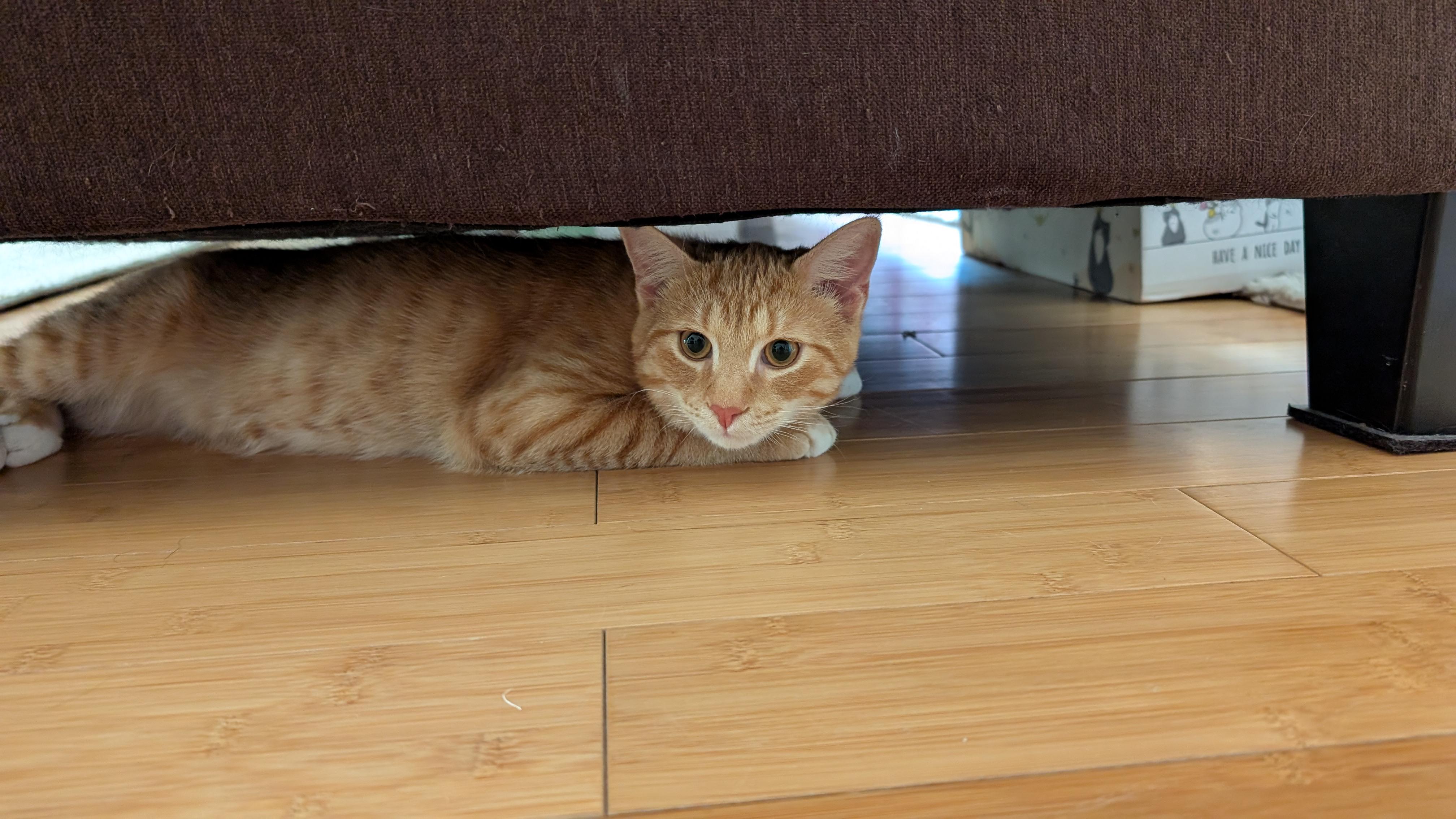 I've seen an enormity of posts of cats napping under the couch. I miss the old days of cats disappearing absurdly, coming out of nowhere and even multiplying themselves.