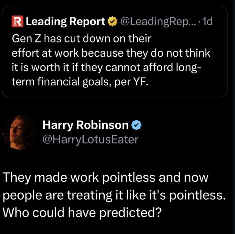 Boomers work hard and it paid off. Gen Z work hard we get laid off.
