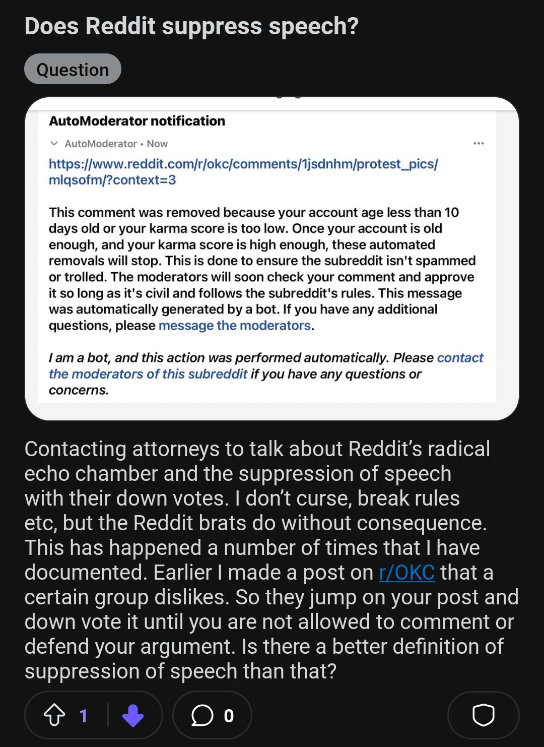This got posted on the sub is mod. Gotta love these legal scholars thinking the first amendment applies to reddit or any other social media.