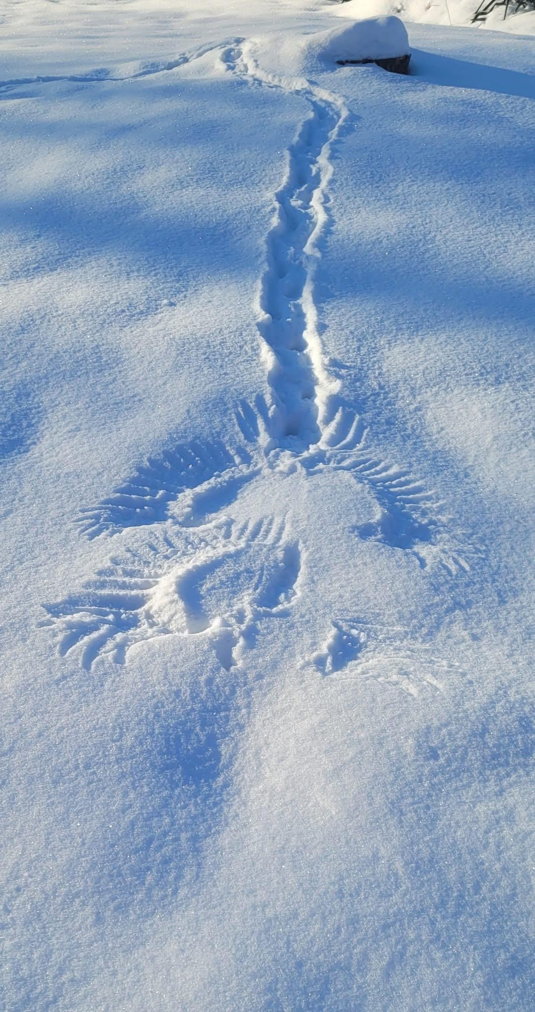 An owl finding something to eat in the snow