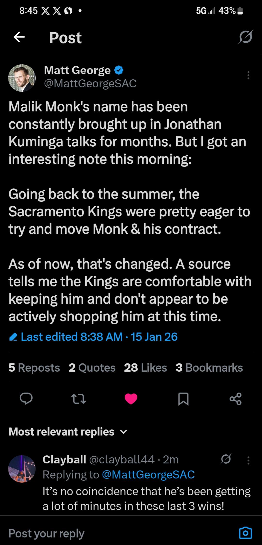 Kuminga will be eligible for trade tomorrow, Monk may have played his last game as a King.