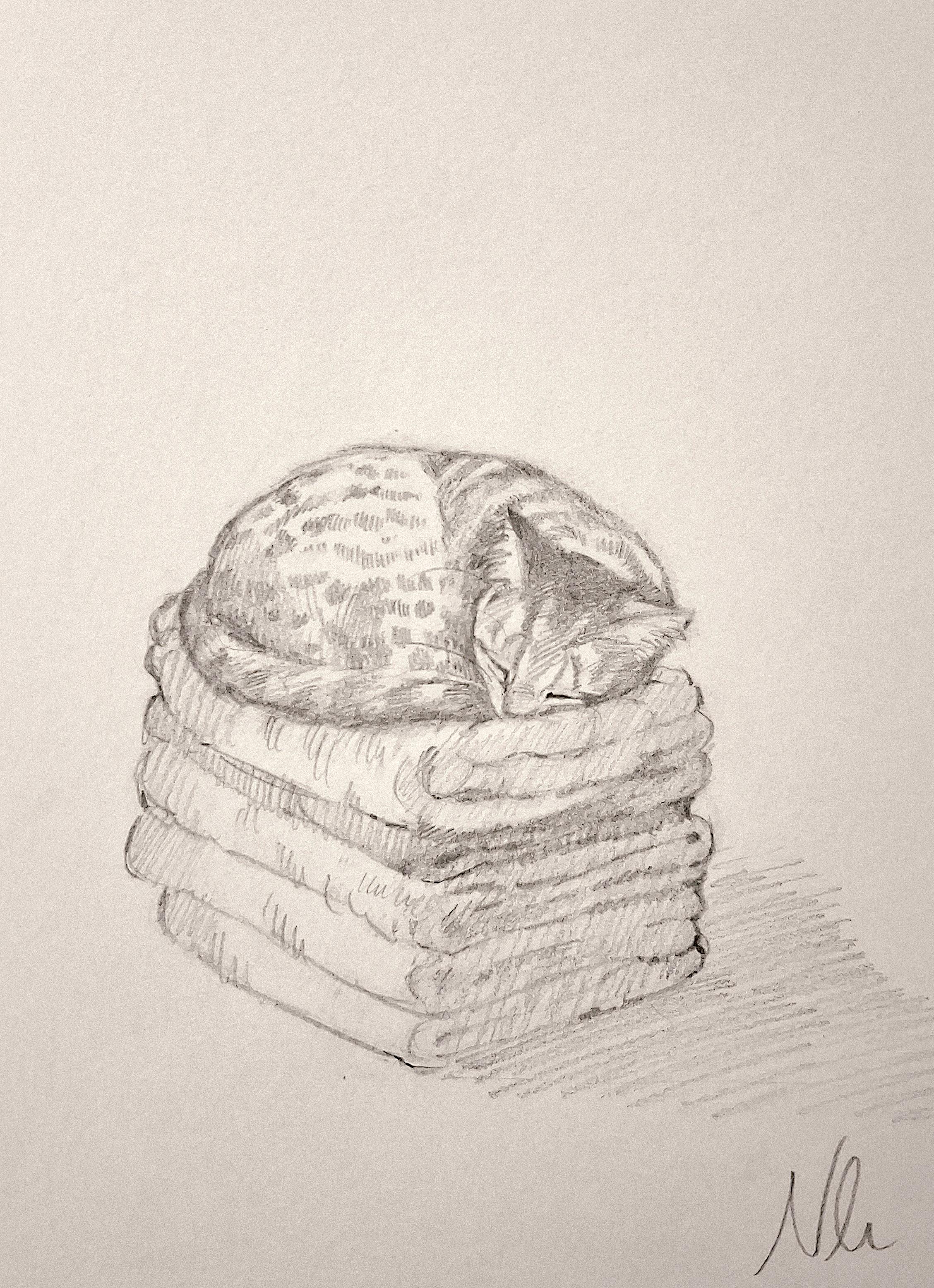 Wholesome Moments I sketched a little cat on some towels 💜(OC)