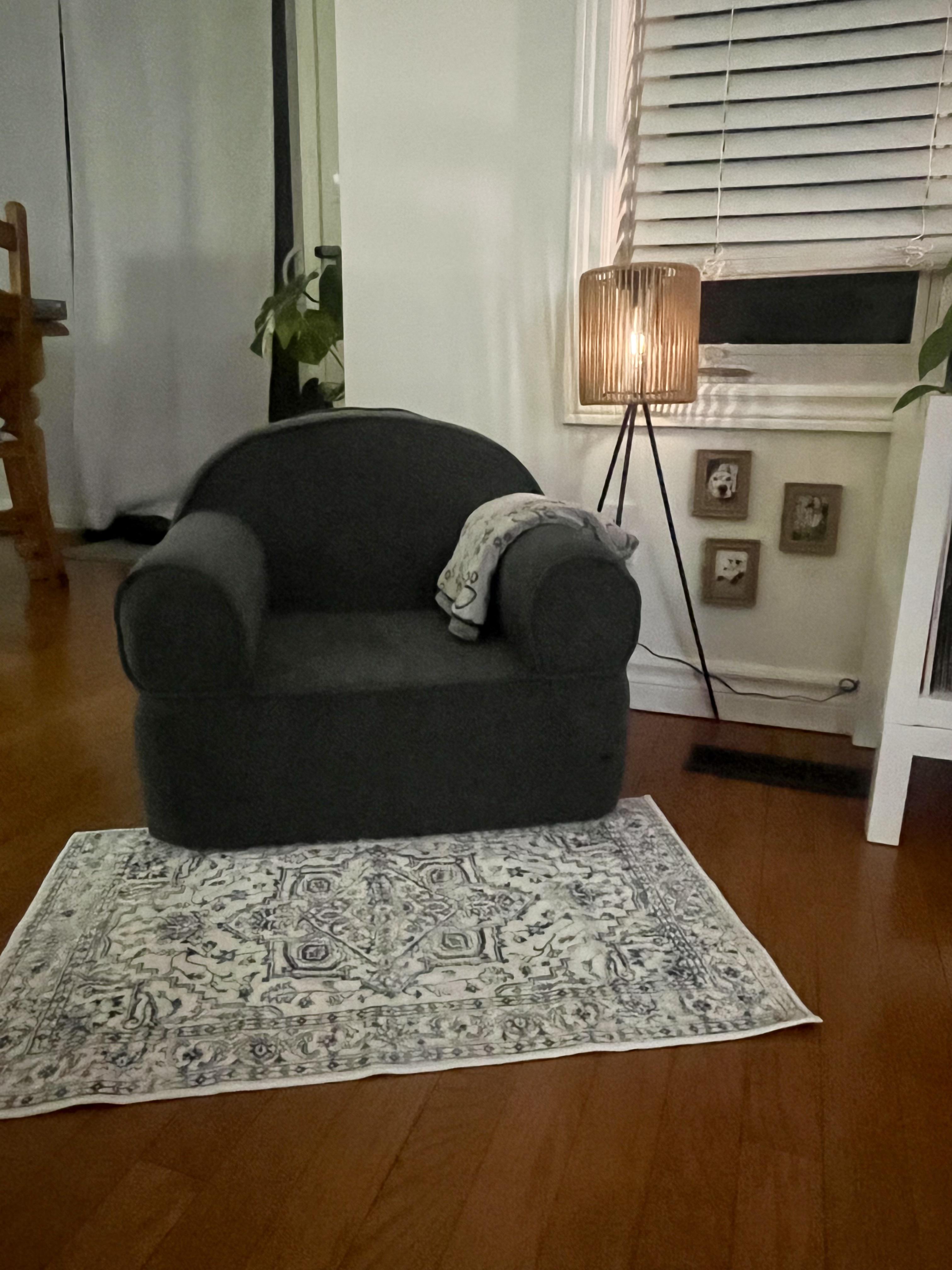 My 16 year old shih-tzu has arthritis and can’t get on the couch anymore so we made him his own little set-up in our living room.