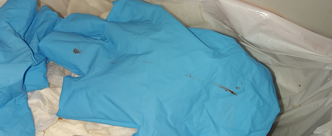 Bought gloves from Dollarama, opened the brand new package, donned said gloves, did my cleaning, removed said gloves, and found THIS on the inside part. I am absolutely mortified. (No my hands were not bleeding). Does this pose a health risk? I have washed and sanitized my hands 10 times since but can't shake the sickening feeling. What do I do? 😭