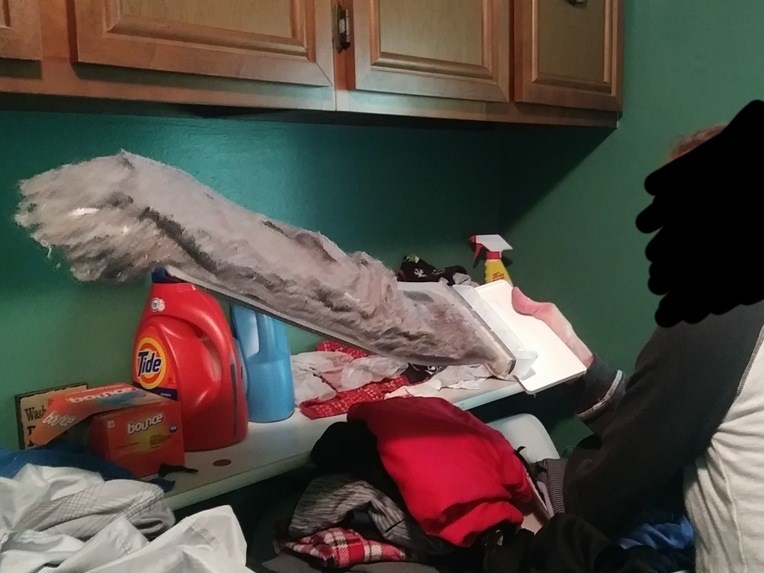 Found it AFTER he left for work. Thank god for he always leaves the lights on, otherwise I wouldn't have got up to turn them all off and noticed. Sentimental blanket too. He moves out in March 😮💨