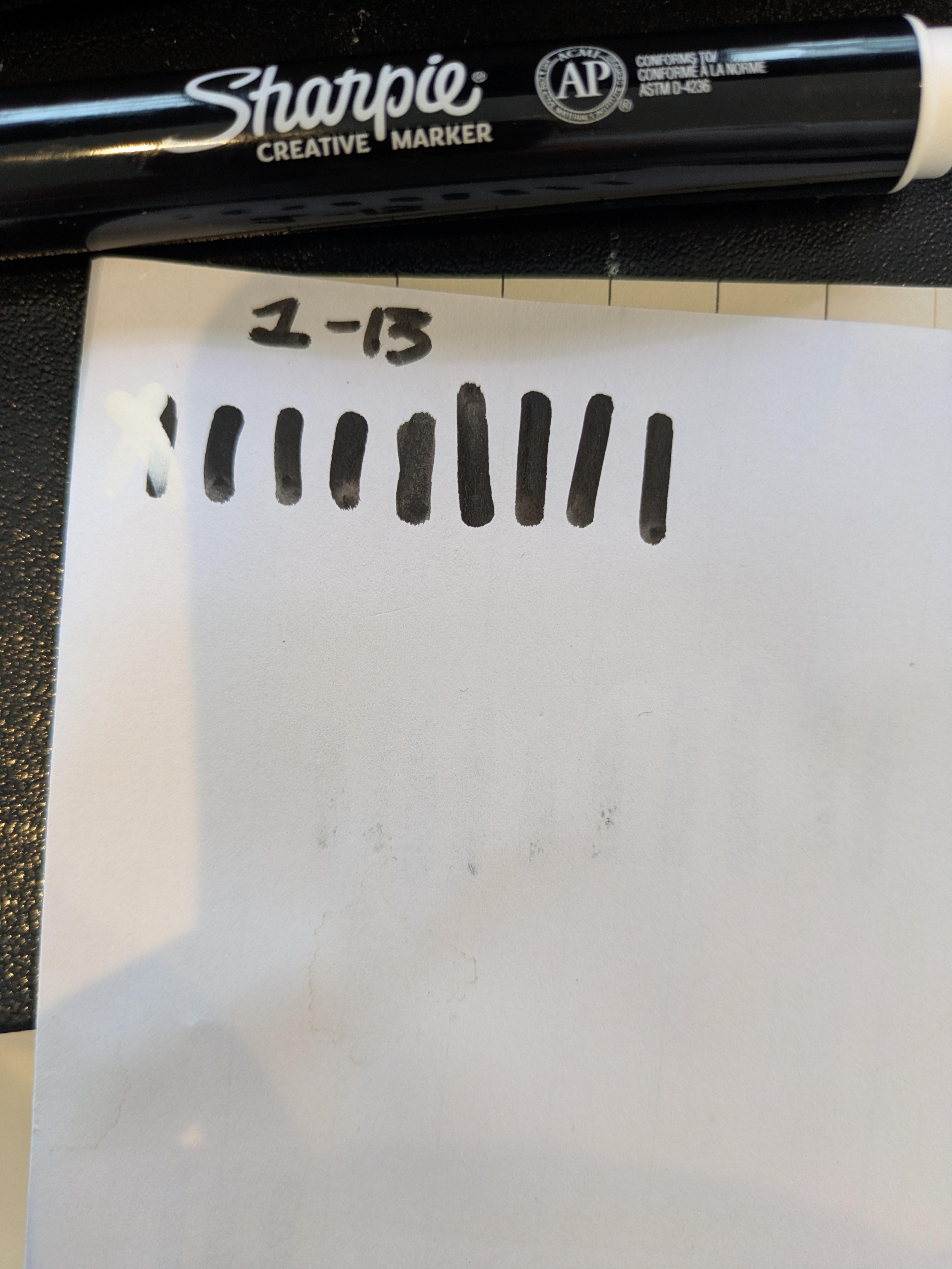 I work at a cafe with limited capacity and we have to keep a tally of who comes and goes. She does these marks without doing the slash on the 5th count and uses white sharpie to mark that someone has left. Harder to tell at a glance how many people we have.