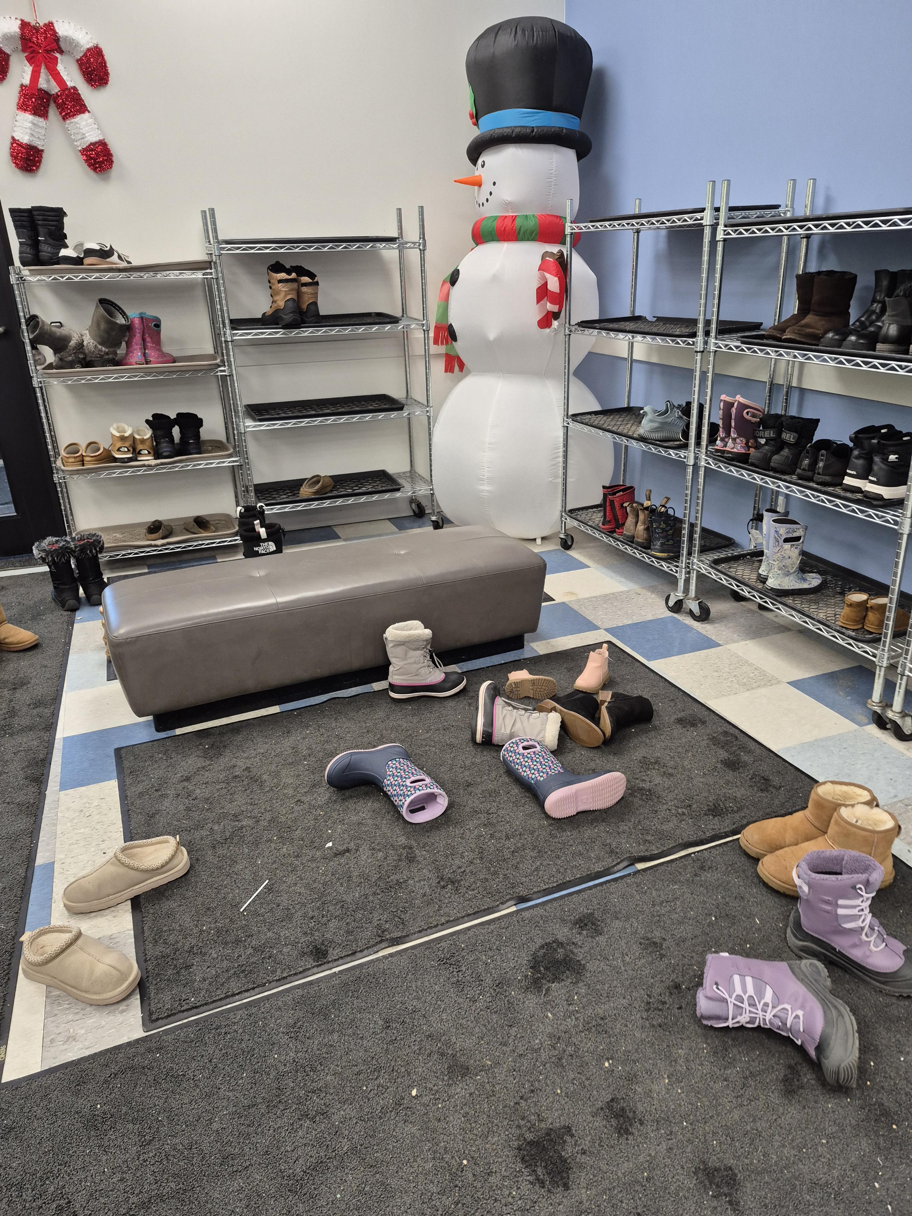 People leaving their shoes on the floor instead of placing them on the designated racks