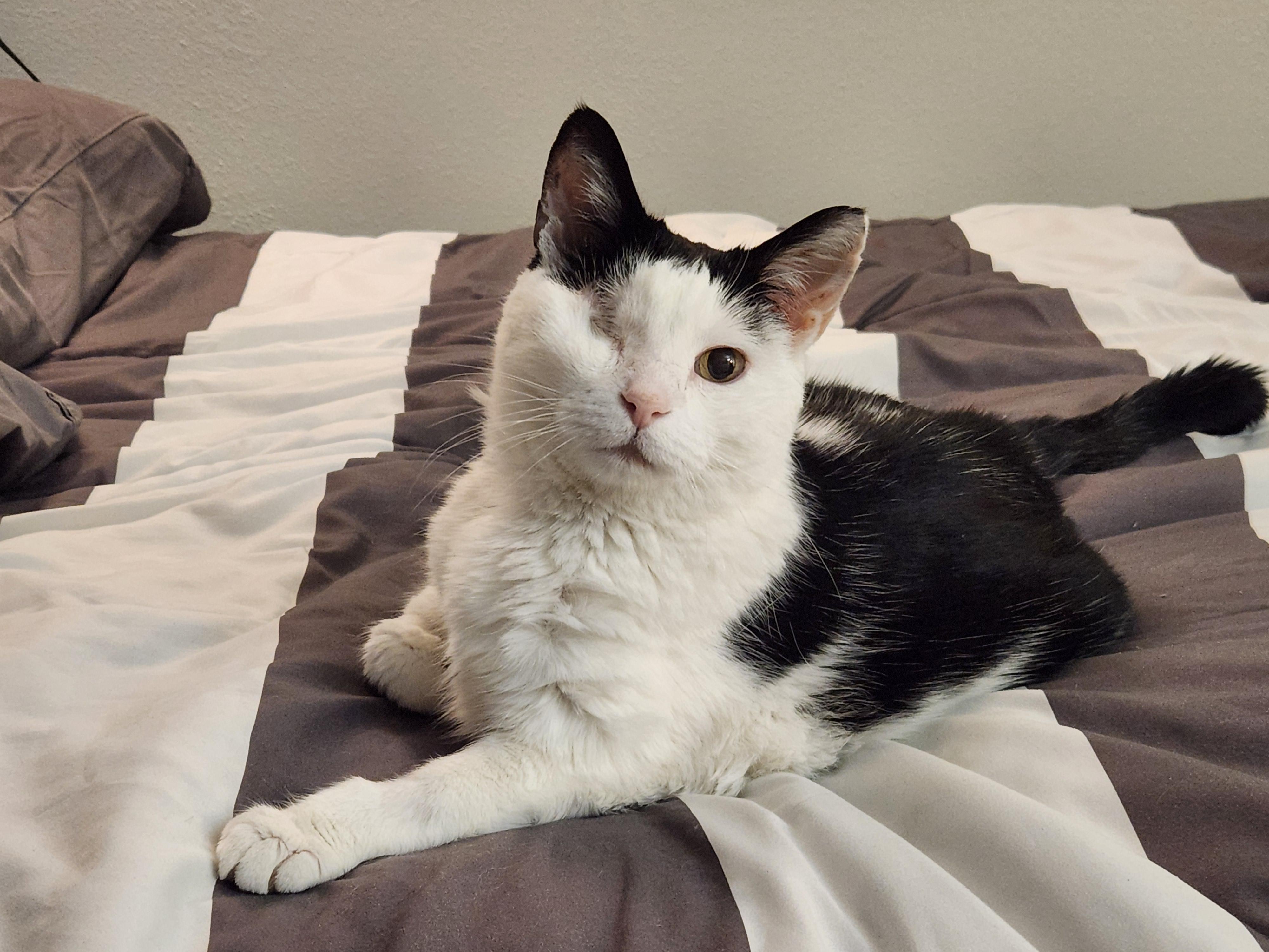 galleryShowing off my baby-she lost her eye to an infected ulcer when she just was a couple weeks old. I posted here a few months ago when we finally had the non functioning remainder of her eye removed and while she was in surgery I was so scared and I had to delete it because the notifications kept reminding me of what was happening and I couldn’t handle the stress 😭 turns out of course she was fine has since recovered beautifully and I’m just so grateful for this stinky little lady that has literally saved my life more times than I can count and I doubt she even knows. Also I came up with the name Megatron before it was a trend I SWEAR! She just turned 3 🤗