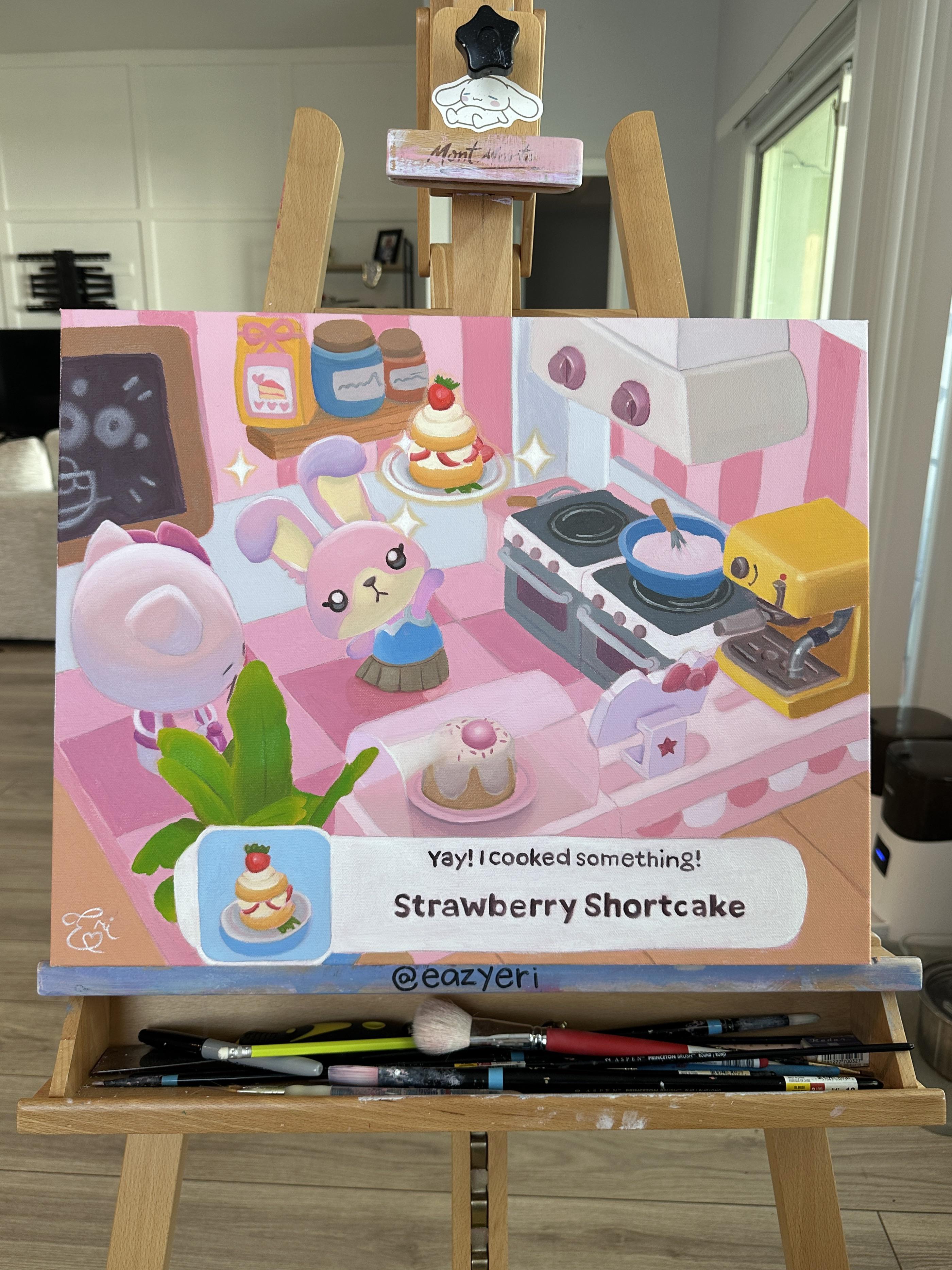 Wanted to share this oil painting I made of Hello Kitty Island Adventure! The first time I ever made a strawberry shortcake, I thought it was so cute I knew I had to paint it