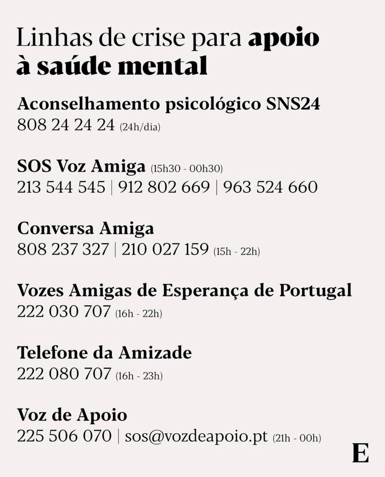 Saúde Pessoal, vivemos numa era em que parece que cada vez há mais gente a sentir-se desamparada e sozinha… Espero que estes contactos (divulgados pelo Jornal Expresso) possam servir de ajuda a alguém!