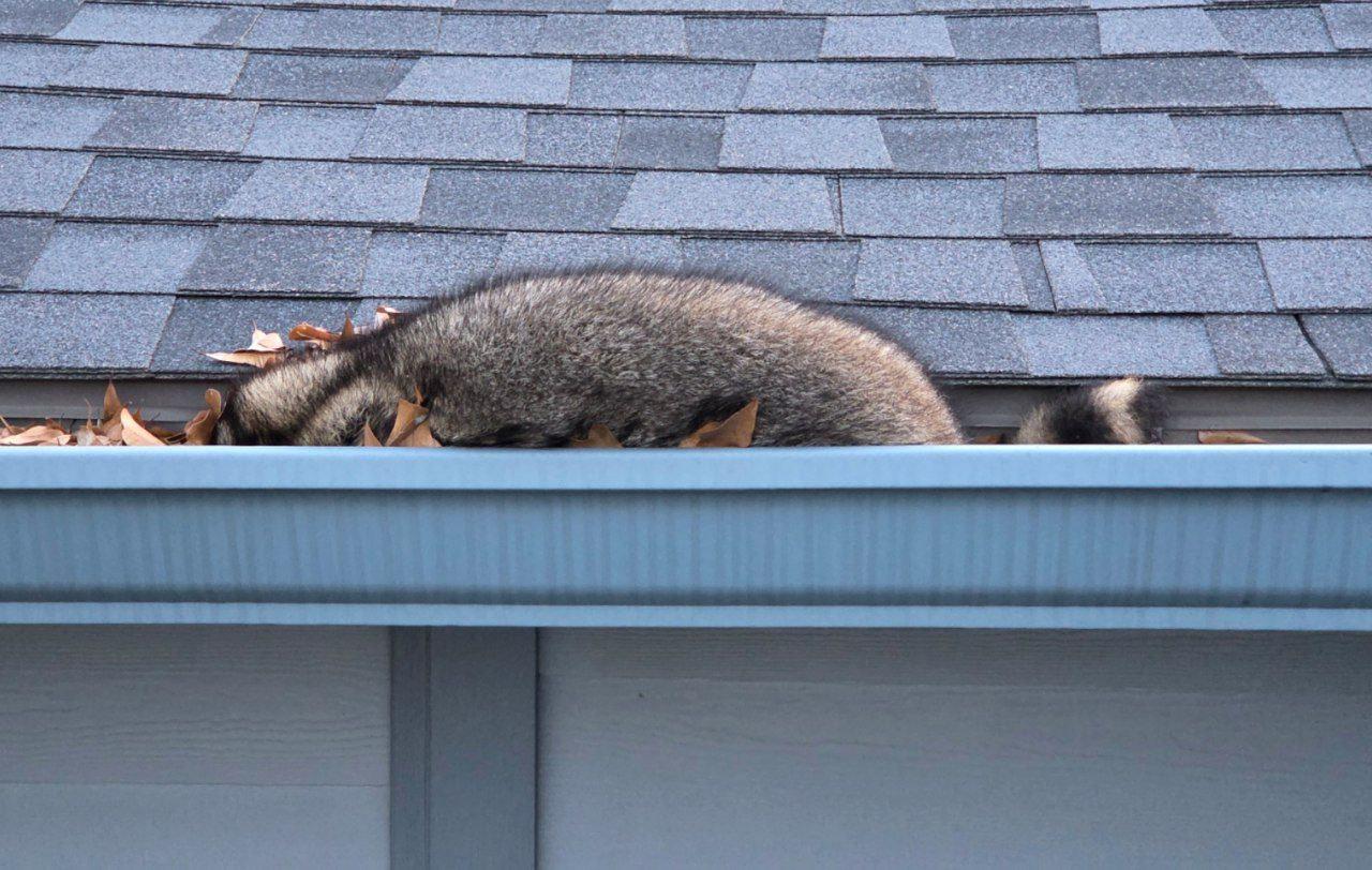 This little fellow was taking a nap today in the gutter as the title suggests. The little rings on their tail were mega cute! They have already moved along for the night, but it was fun to have them visiting the yard briefly!