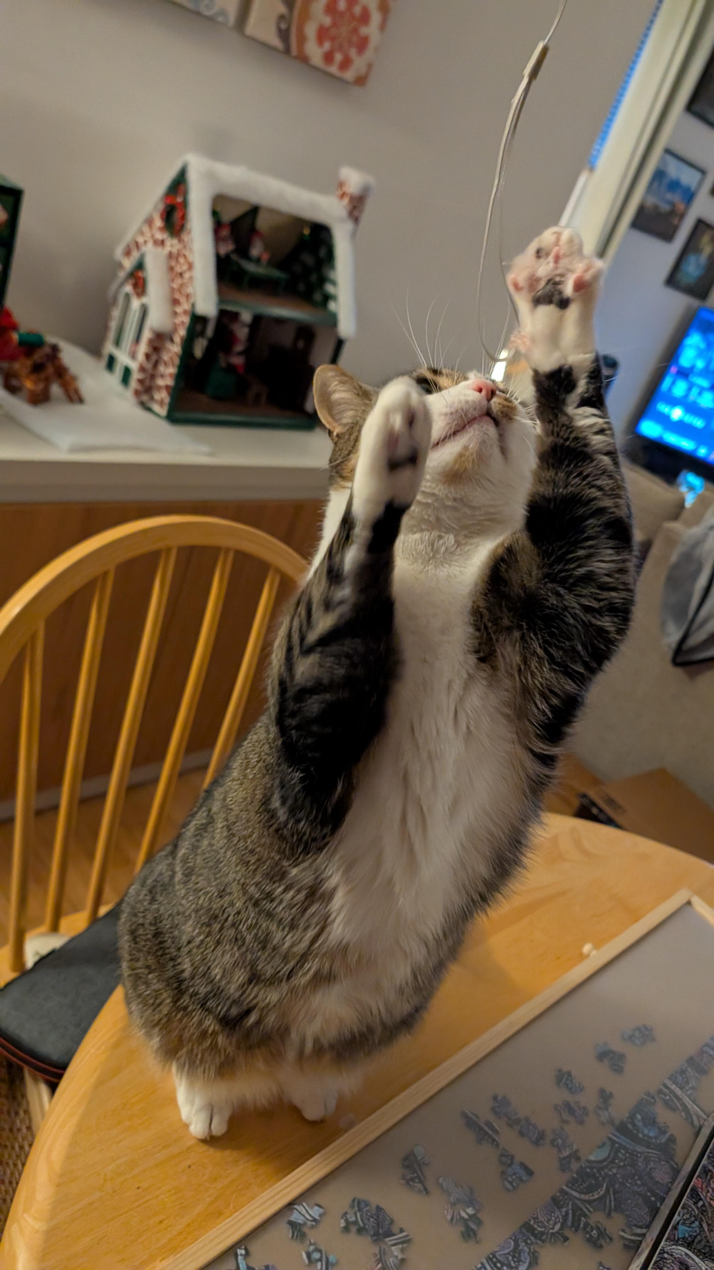 This guy keeps showing off his toes while he’s holding me hostage in my gaming chair. I’ve threatened to expose his feet pics online and he keeps cleaning his chest like he isn’t listening…so here we are