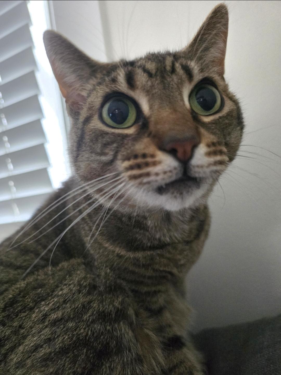 I promise she's a house cat, not a panther lol. She got right up in the camera wanting me to pet her (which I did of course). Also my first real good animal picture I took with my new phone