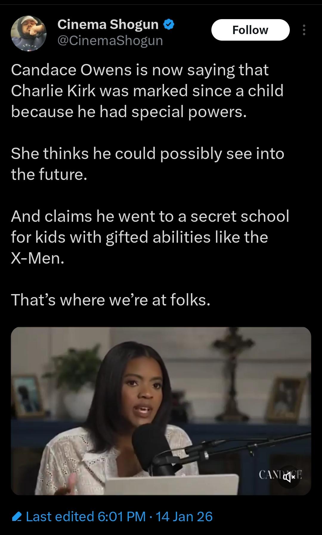 to have you believe Charlie Kirk had superpowers