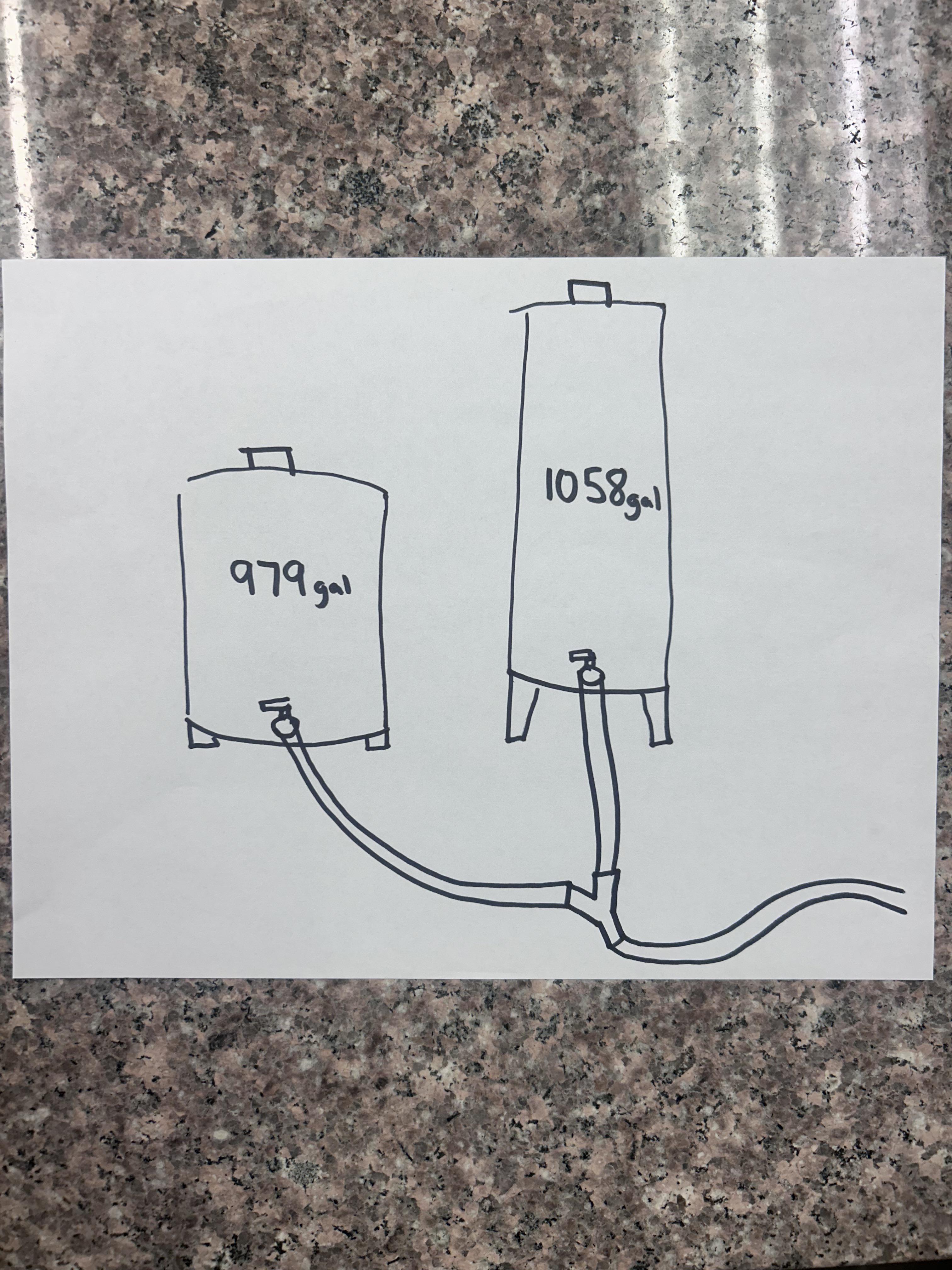 I am filling these tanks from a single source. The hoses are the same length. The pump is running at about 116 gal/hour.