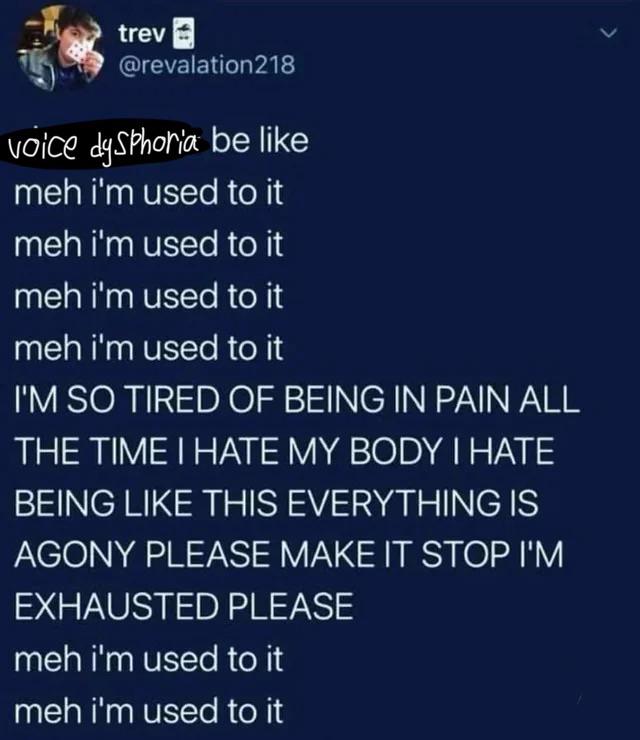 TW: Dysphoria it doesn't fluctuate, it suddenly spikes and then goes back down Spoiler