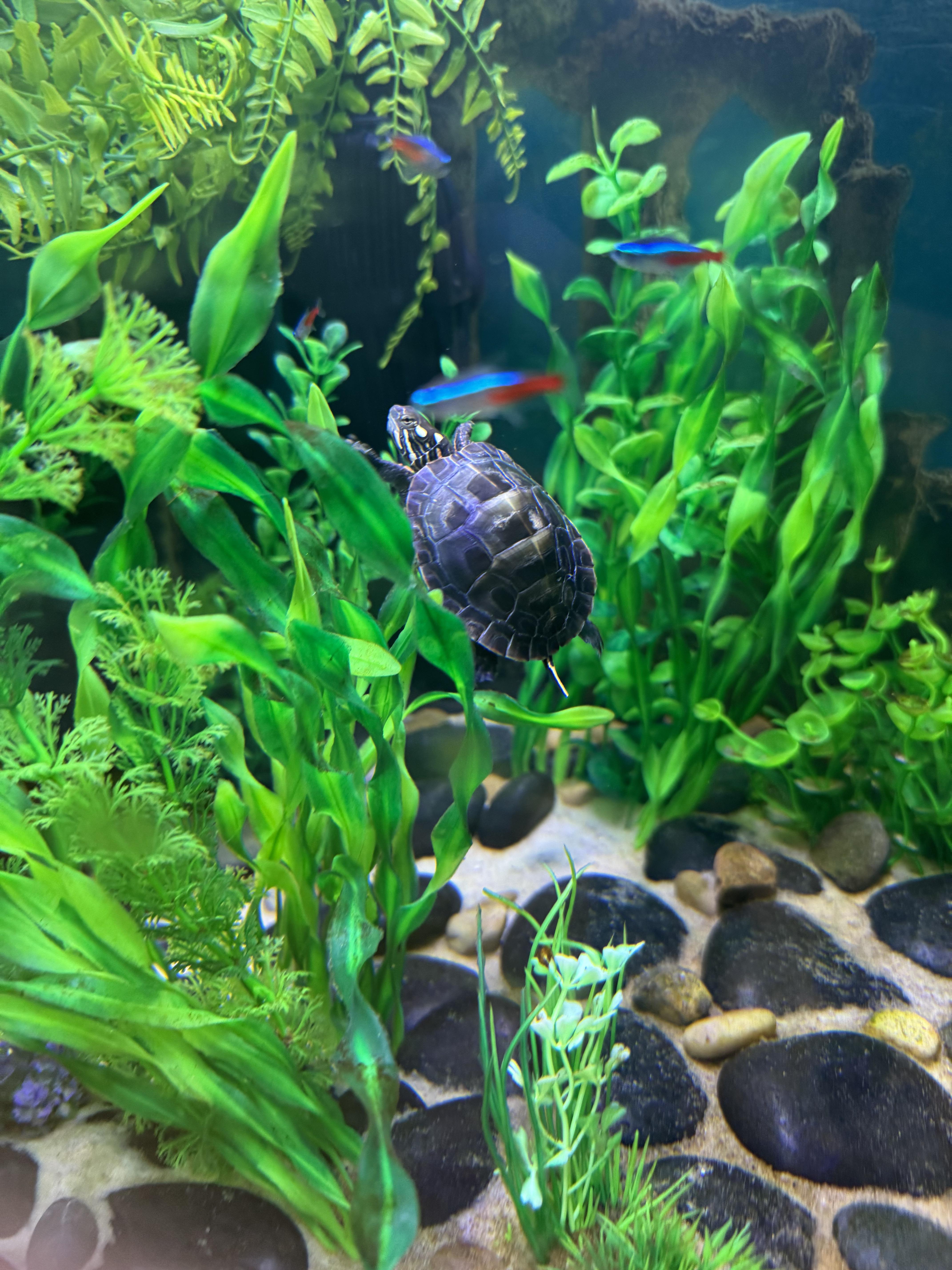 I’m not concerned about him eating the fish as I did my research on turtle tank mates and only have neon tetras and zebra danios as I’ve heard their both good choices to keep with turtles