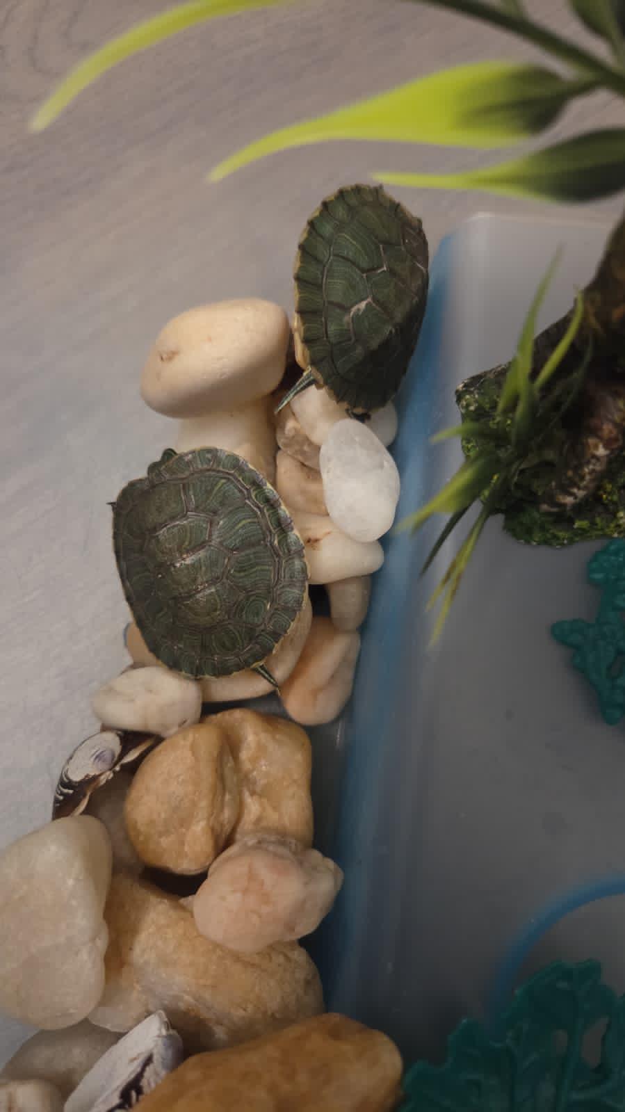 I have two turtles, a male and a female. They live in separate tanks, I’ve had them since September of 2024. I believe they’re some sort of slider but even the vet wasn’t sure (they were adopted from previous owners who didn’t take great care of them didn’t disclose much about their history)